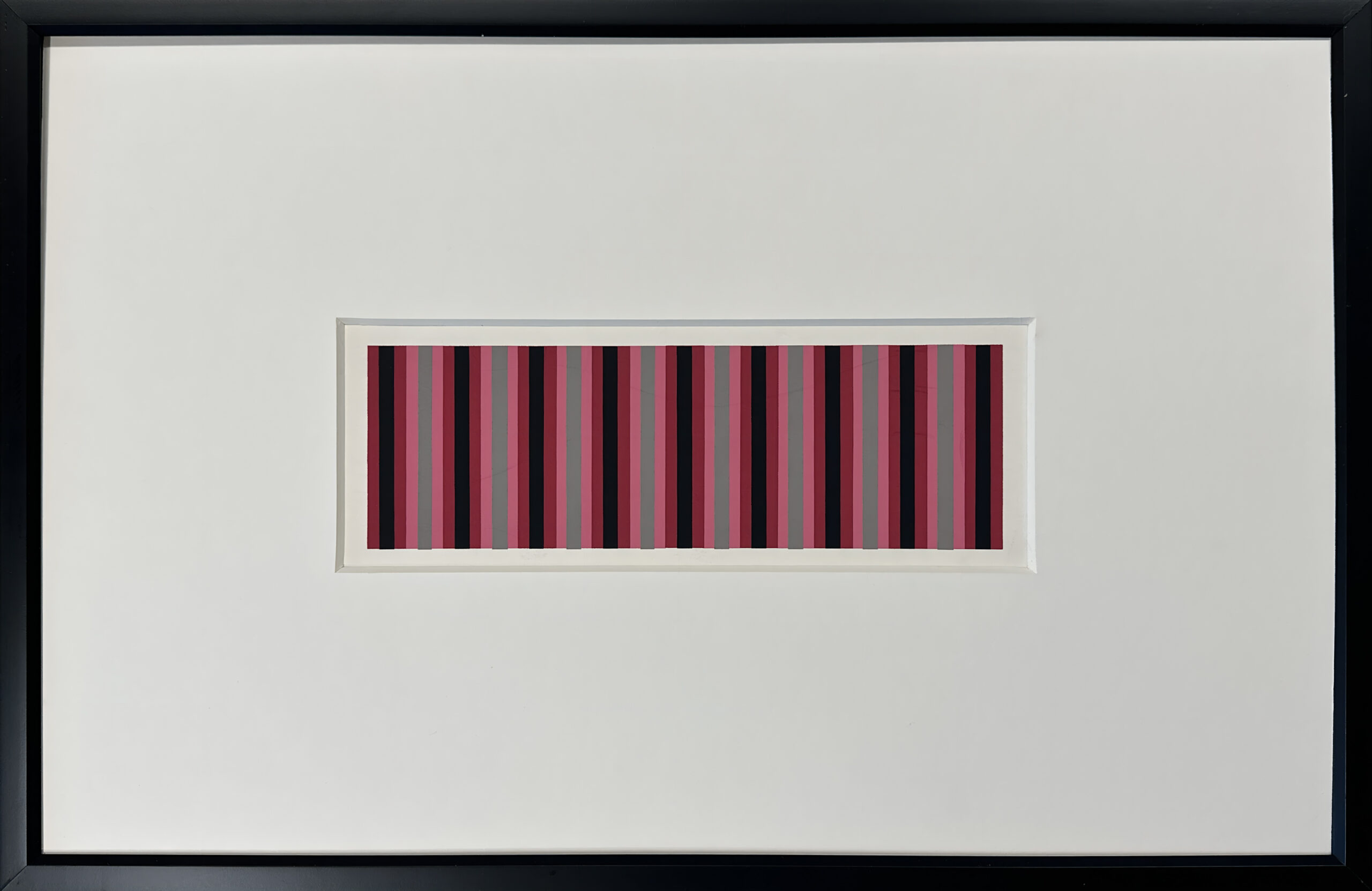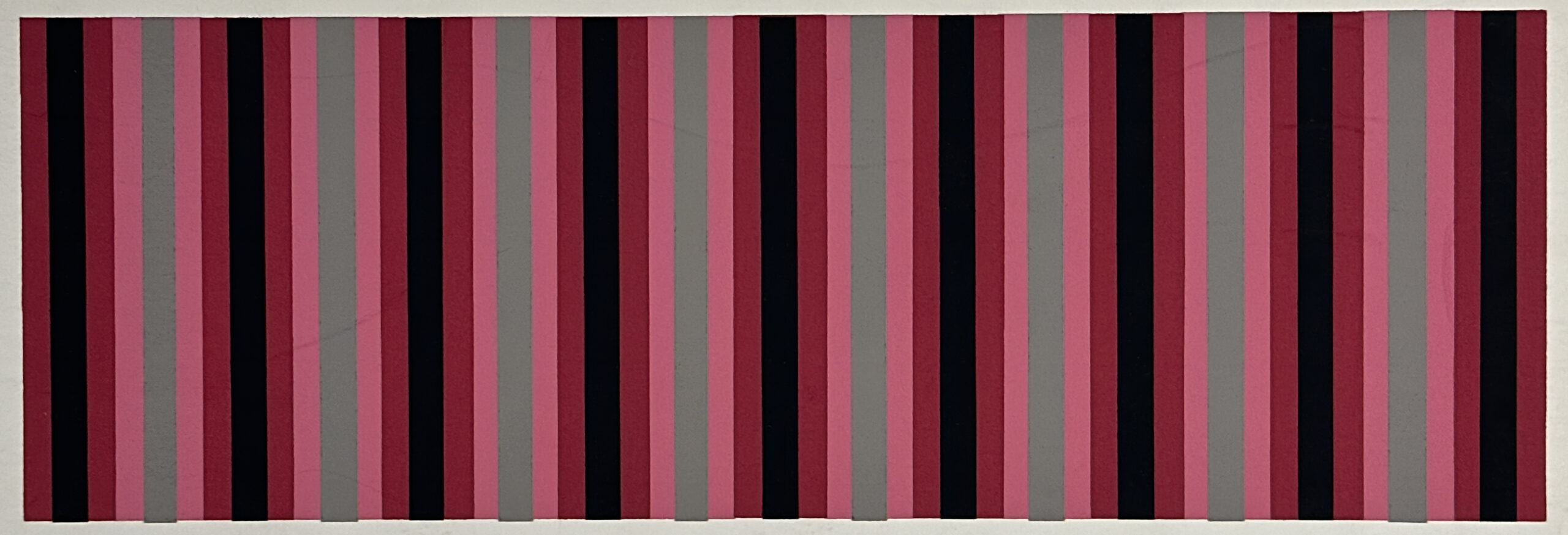 This plate is part of Plate XII-2b of Josef Alber’s famous study of color, Interaction of Color. Albers created Interaction of Color to explore how colors and shapes interact with other colors and shapes. This particular plate along with its other half are presented to prove the Bezold Effect. This picture was separated from its mate by its former owner, a university, but it stands up beautifully on its own, as a color study, an attractive image, and as part of one of the most important developments in the study of art theory.