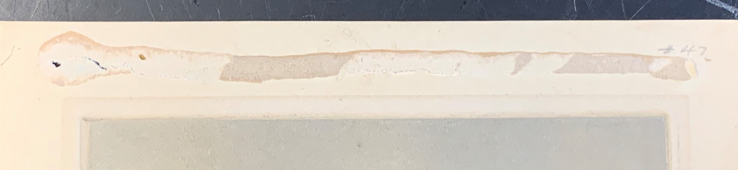 This print is quite special because it is apparently the only trial proof of the second state ever made in black and white. (One trial proof was made of the first state—an etching without aquatint—but it was destroyed; two trial proofs were pulled of the second state in color.) This print was not signed, presumably because it was a trial print.