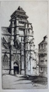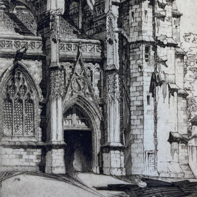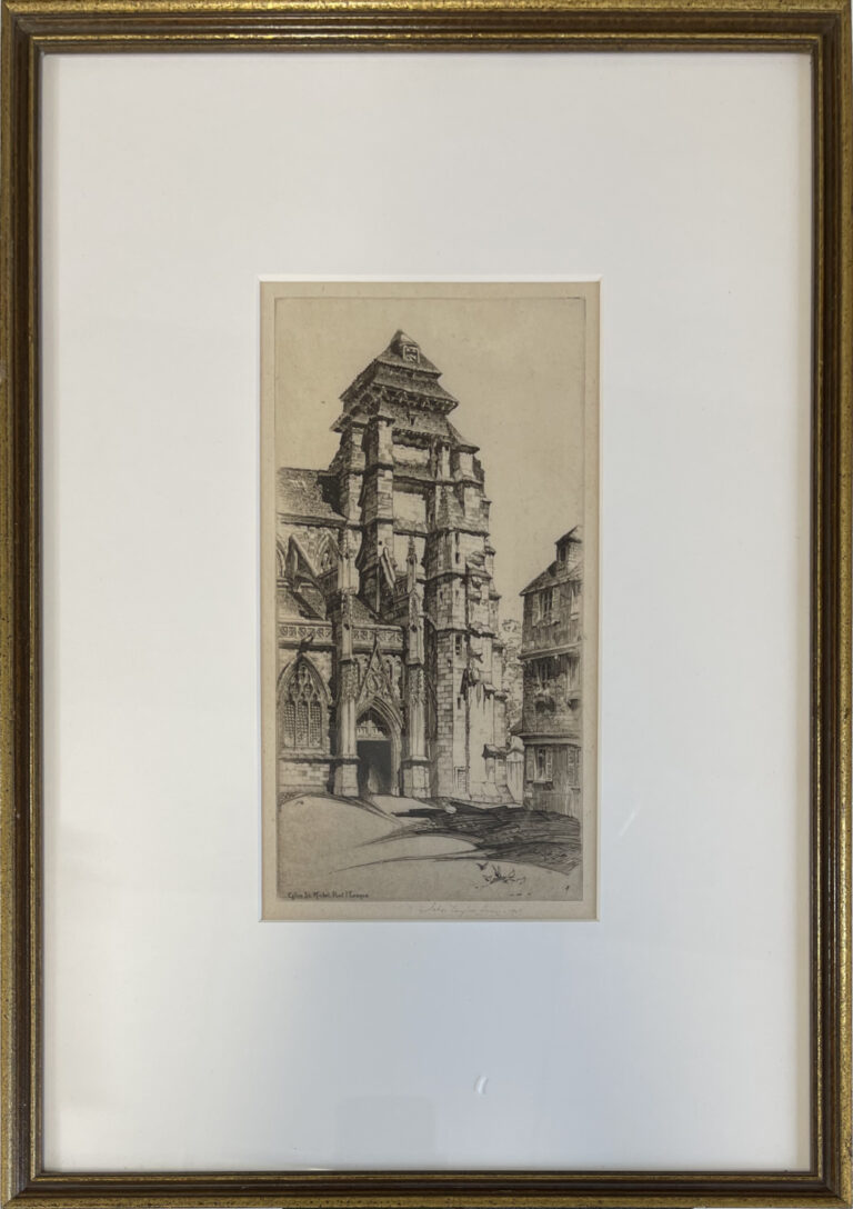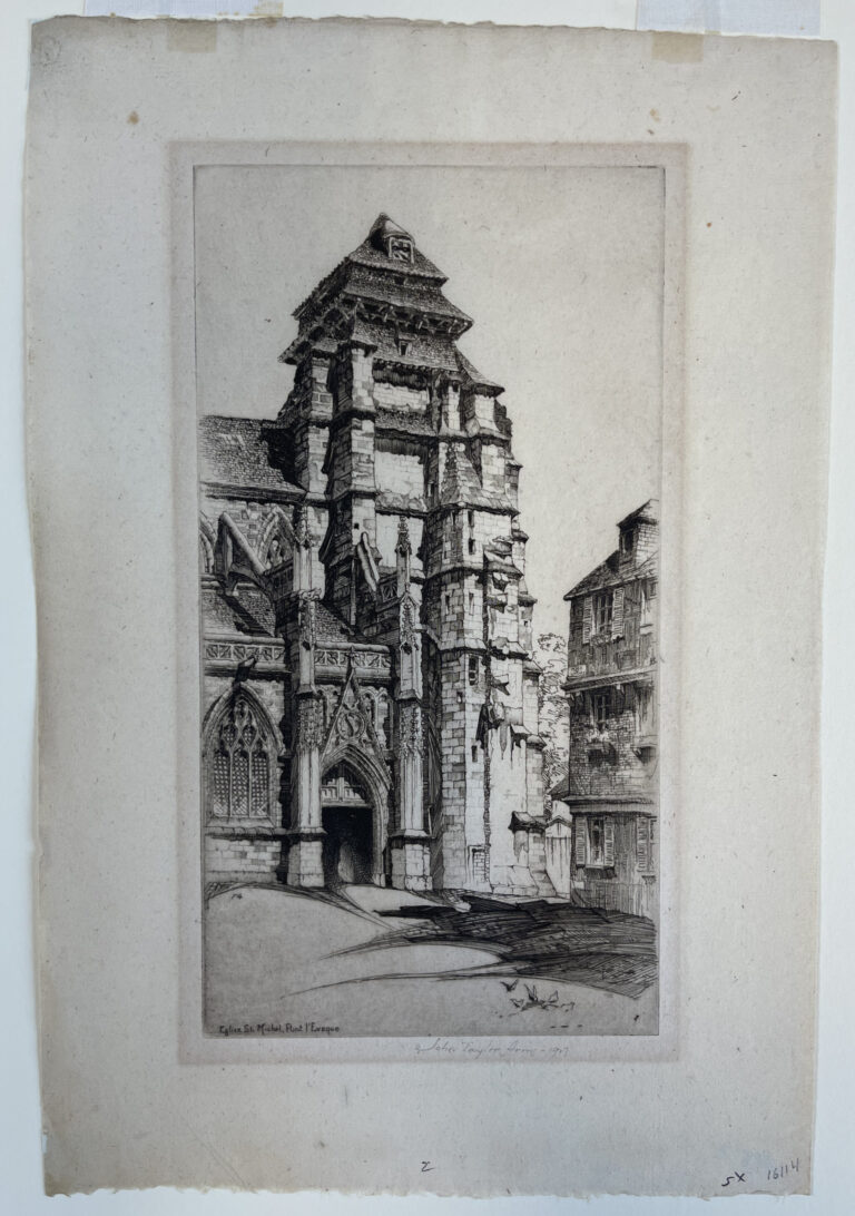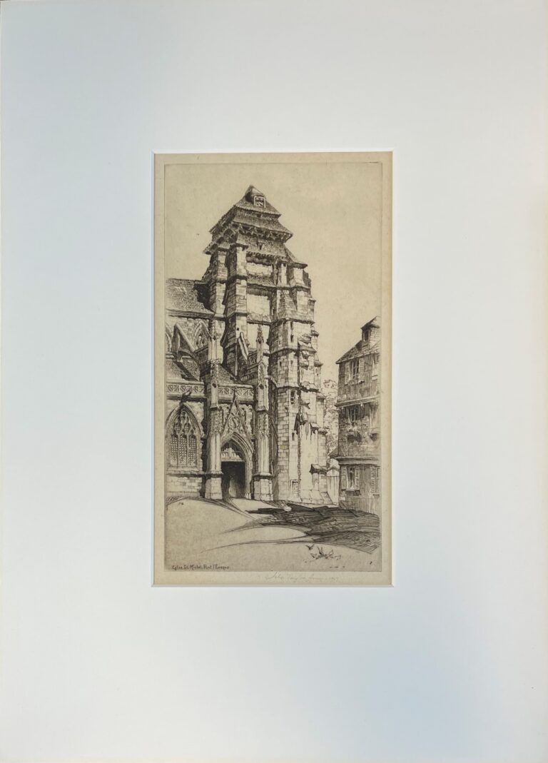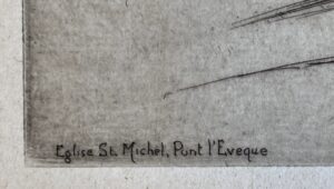 This print, “Église Saint Michel, Pont L’Évêque,” is part of Arms’ Churches of France series.