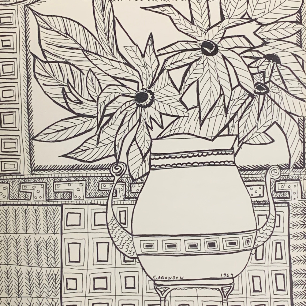 An early woodblock print by the accomplished painter. Connie Aronson is primarily known for her vibrant use of color—but clearly she is equally adept working with little or no color.