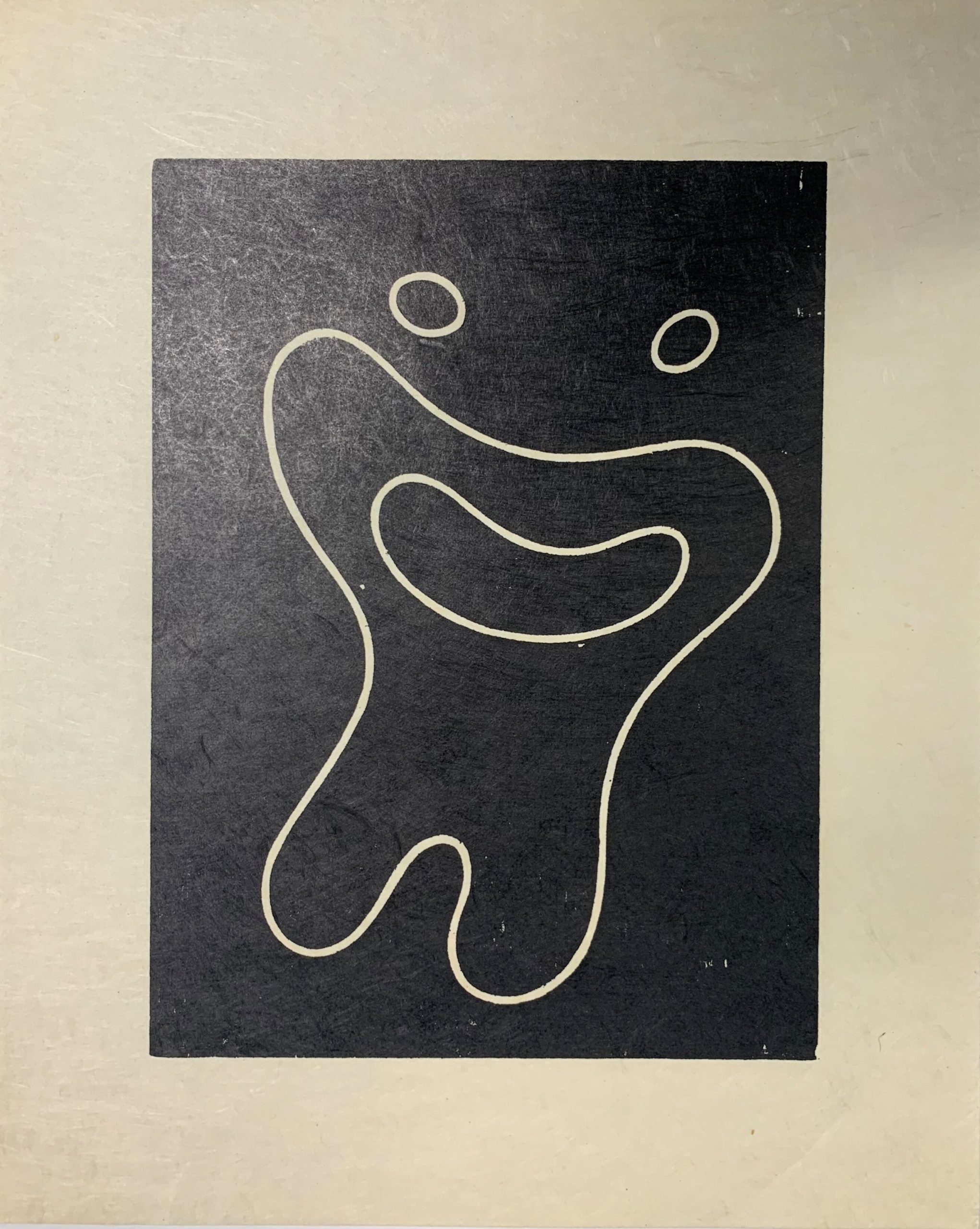 Jean Arp’s Dreams and Projects portfolio, published in 1952, might have been the first of the works Valentin published. The portfolio, printed by Fequet et Baudier in Paris, contains 28 beautiful and evocative woodcut prints. This woodcut is from one of only 25 special sets of the portfolio which were printed on rich and lustrous Japan paper.