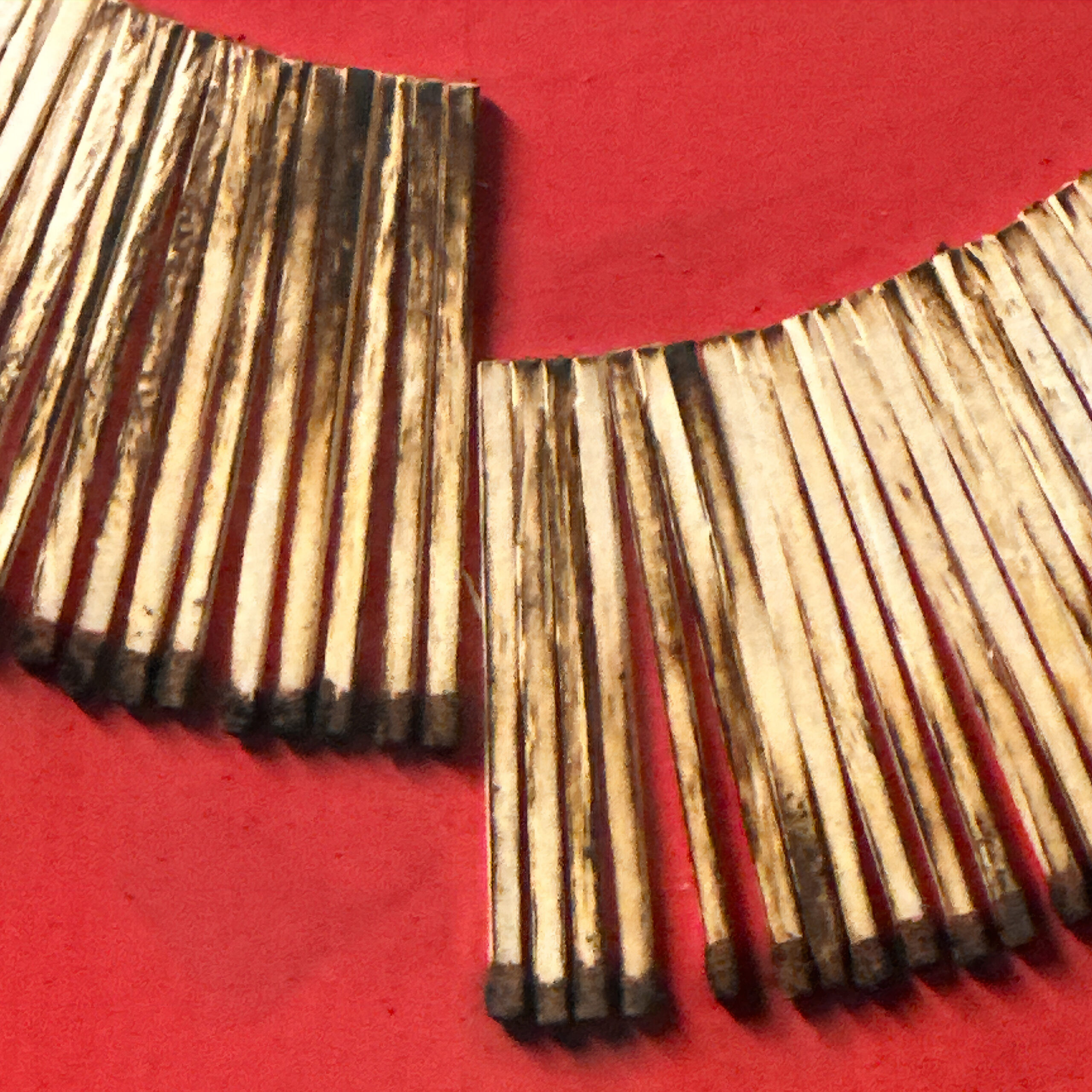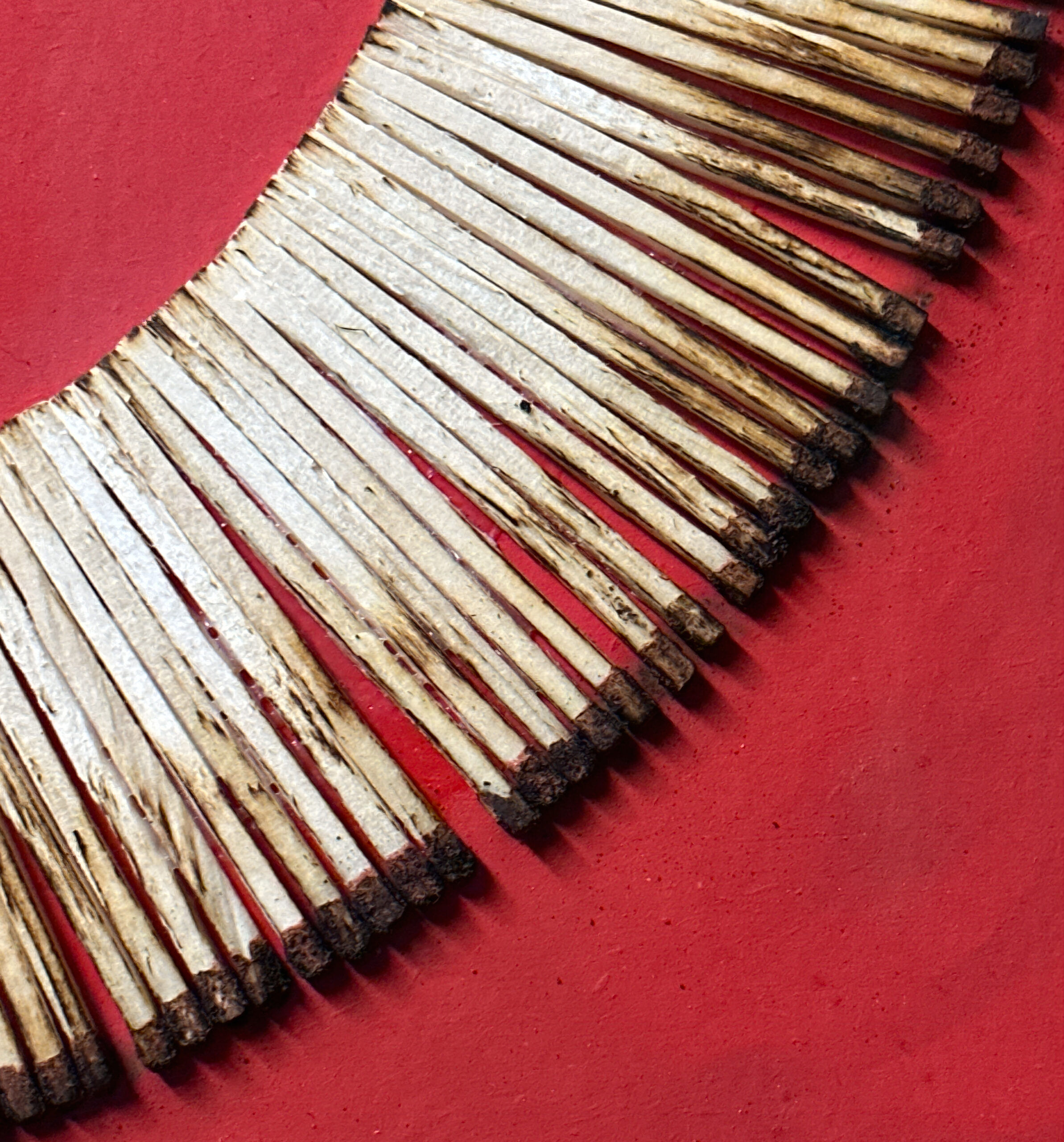 Burned Matches on Red-Painted Panel.