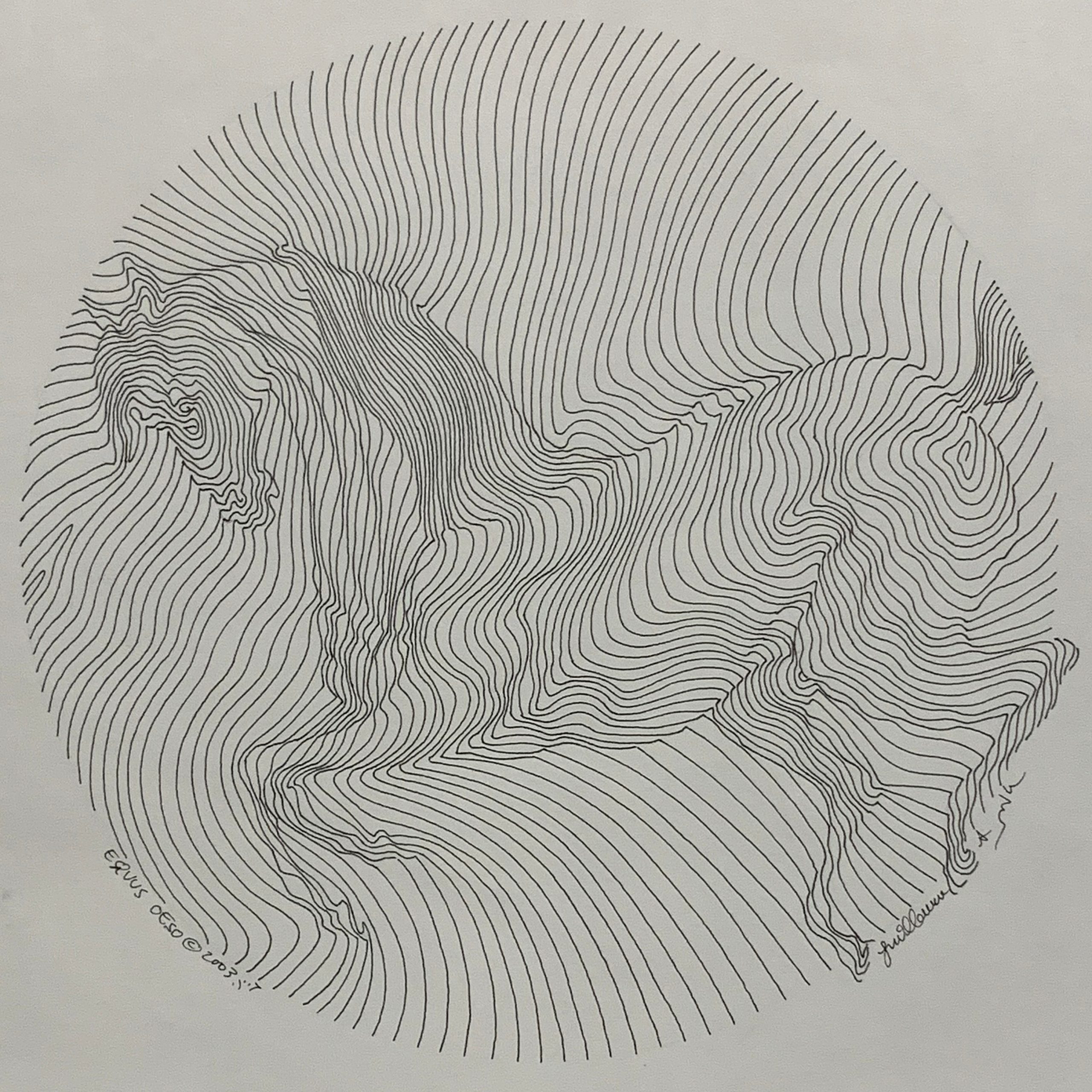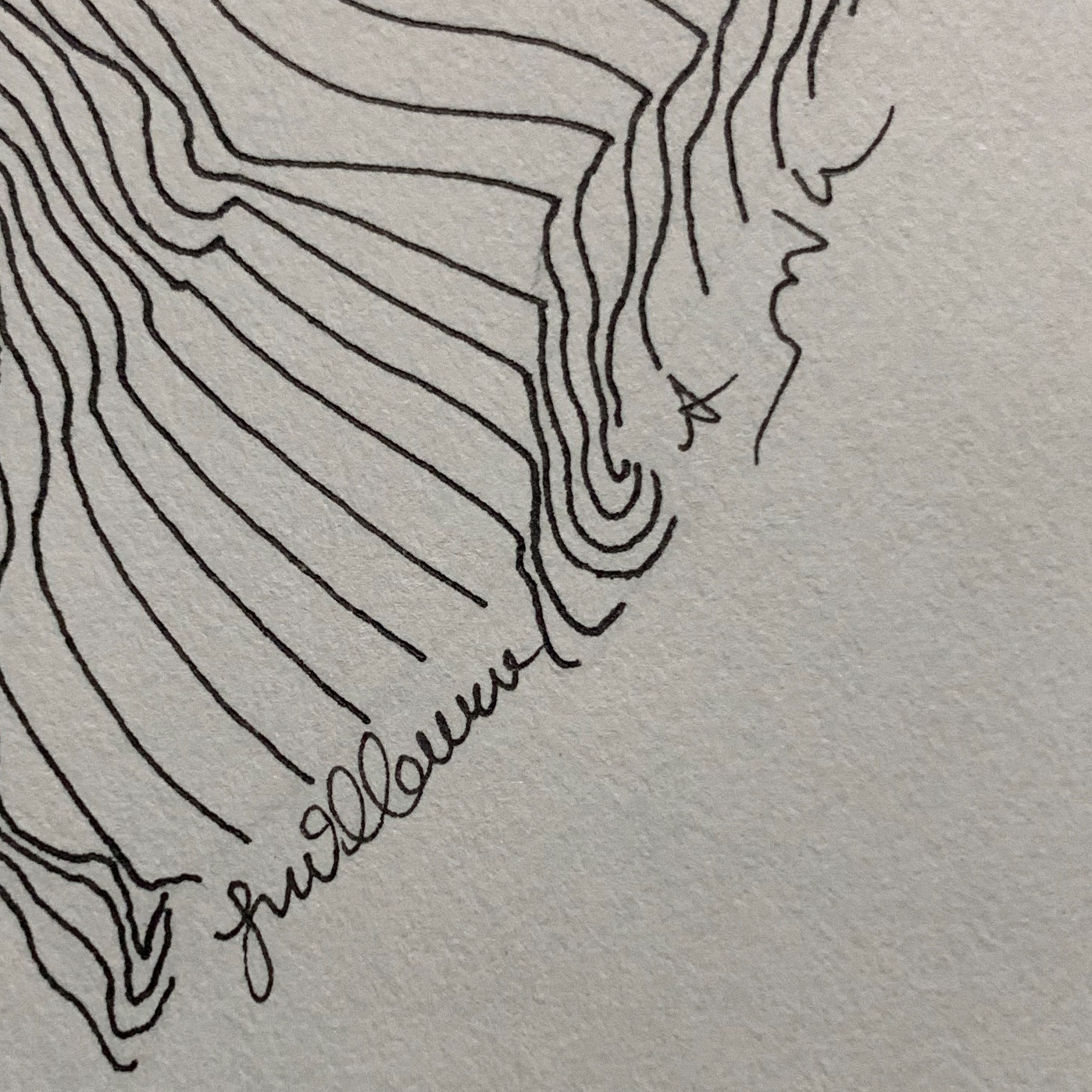 A noble picture of a horse, beautifully hand-drawn in Guillaume Azaoulay’s signature parallel-line style, with the faintest pencil lines showing proof of the artist’s hand.