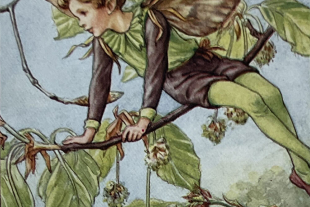 Cecily Mary Barker’s charming illustration of the elusive Beech Tree Fairy, who flits among the blossoms and helps to keep the tree happy, rarely seen but essential to the health of the tree.