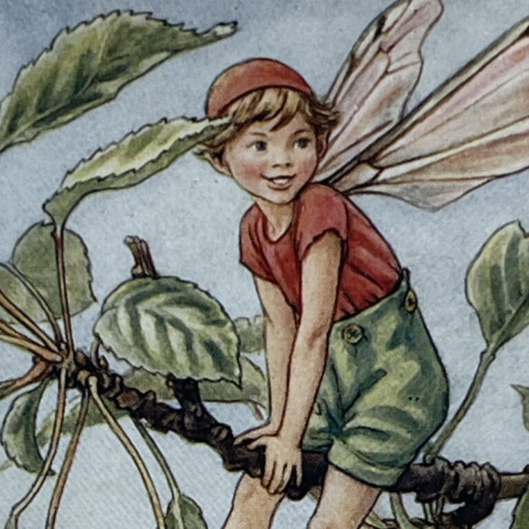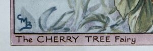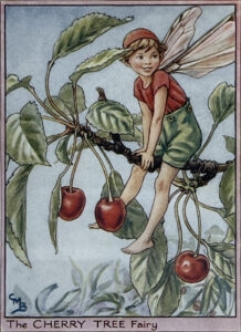 Cecily Mary Barker’s charming illustration of the elusive Cherry Tree Fairy, who flits among the blossoms and helps to keep the tree happy, rarely seen but essential to the health of the tree.