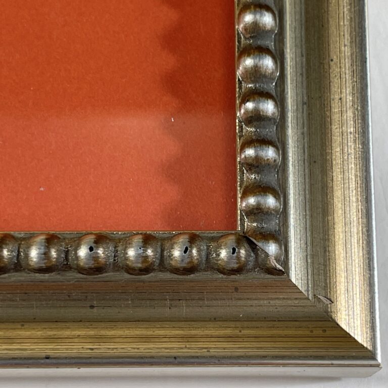 Custom matted and framed in an ornamented silver wood frame behind 99.9% UV-filtering art glass using only conservation materials.