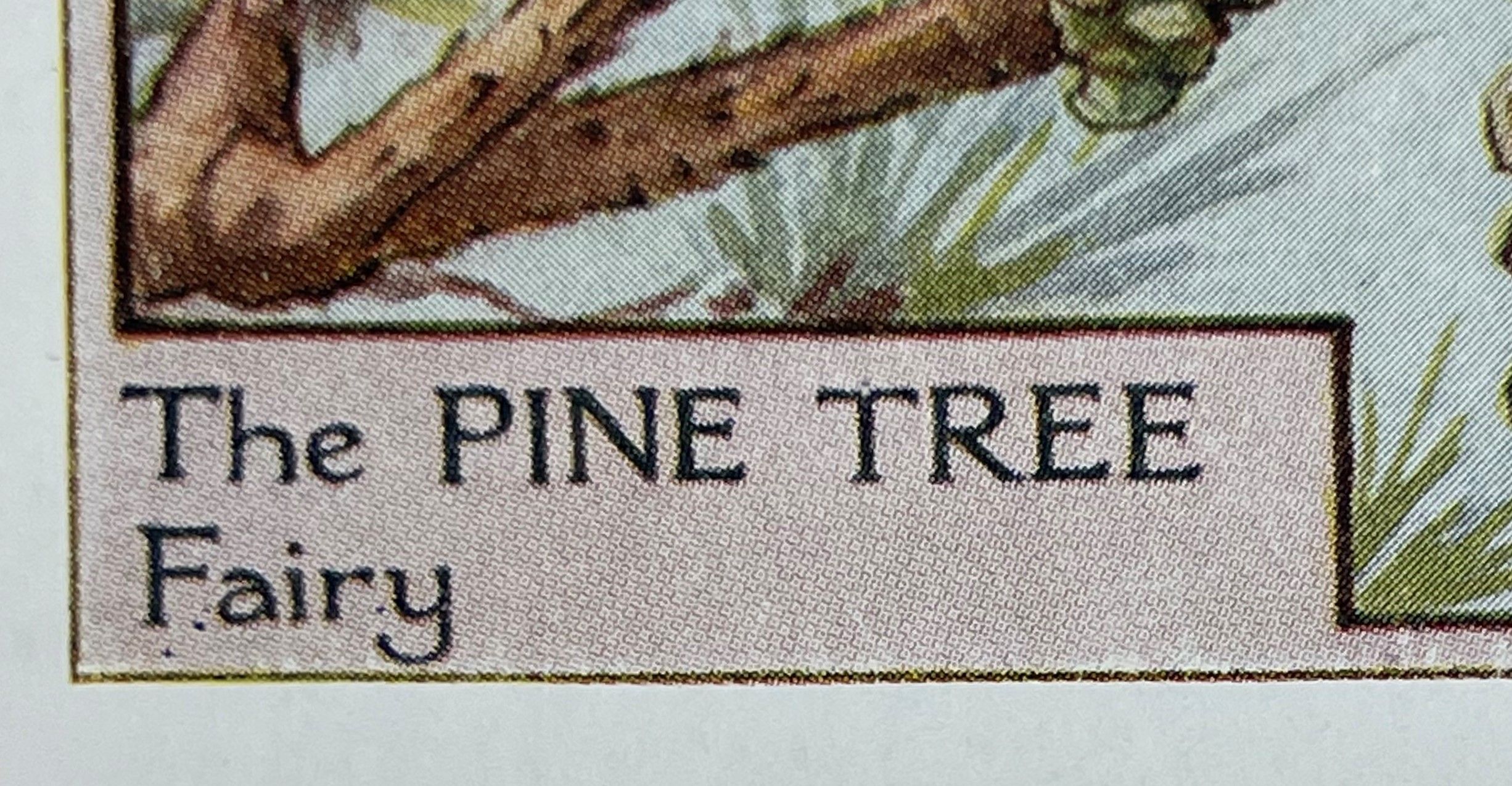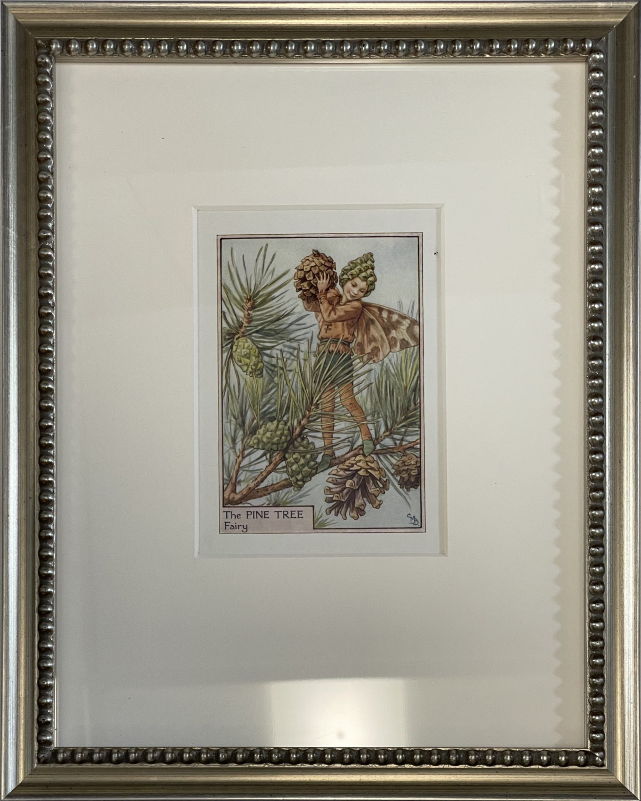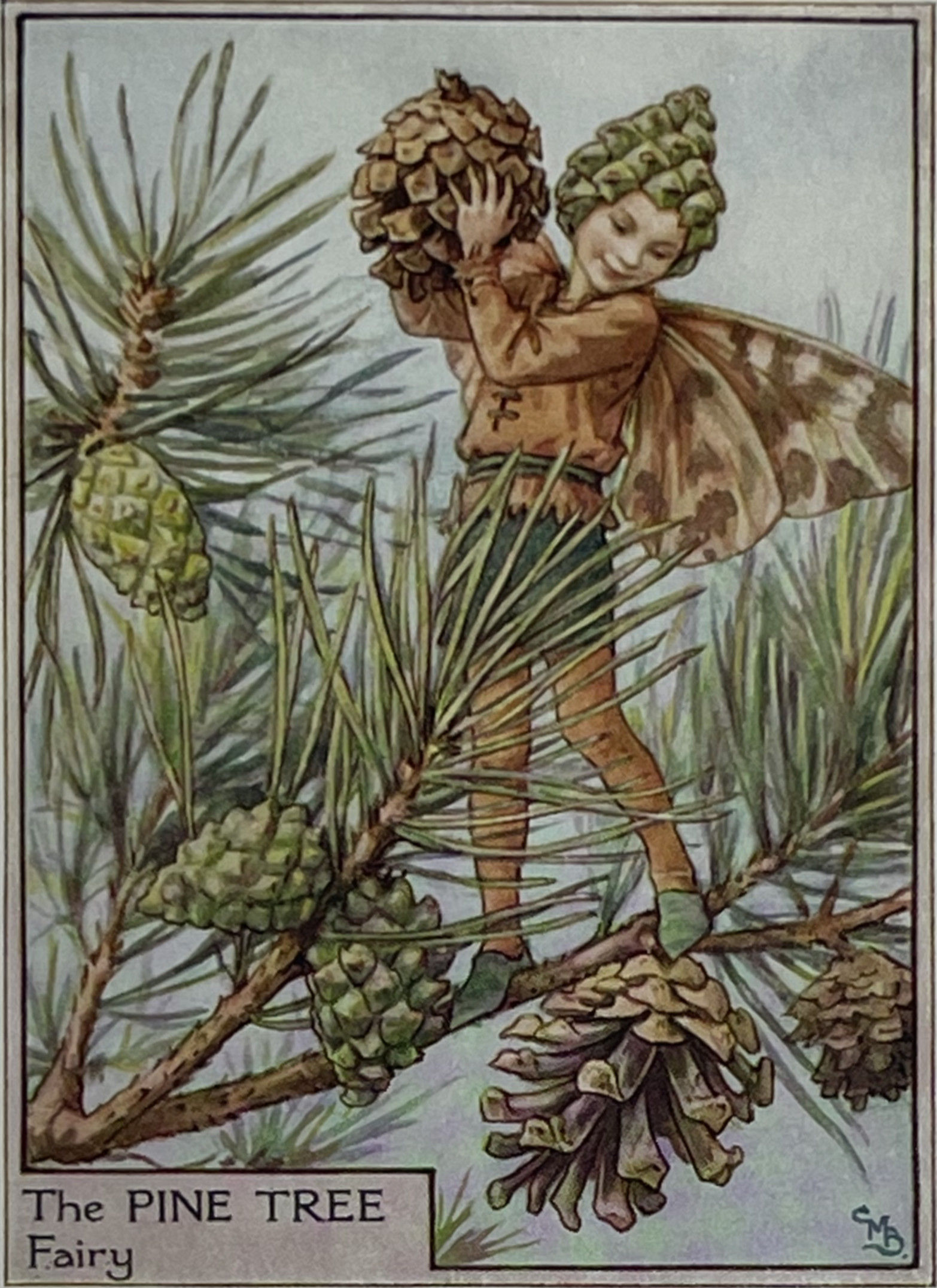 Cecily Mary Barker’s charming illustration of the elusive Pine Tree Fairy, whose playful antics with the pinecones keep the tree happy, rarely seen but essential to the health of the tree.
