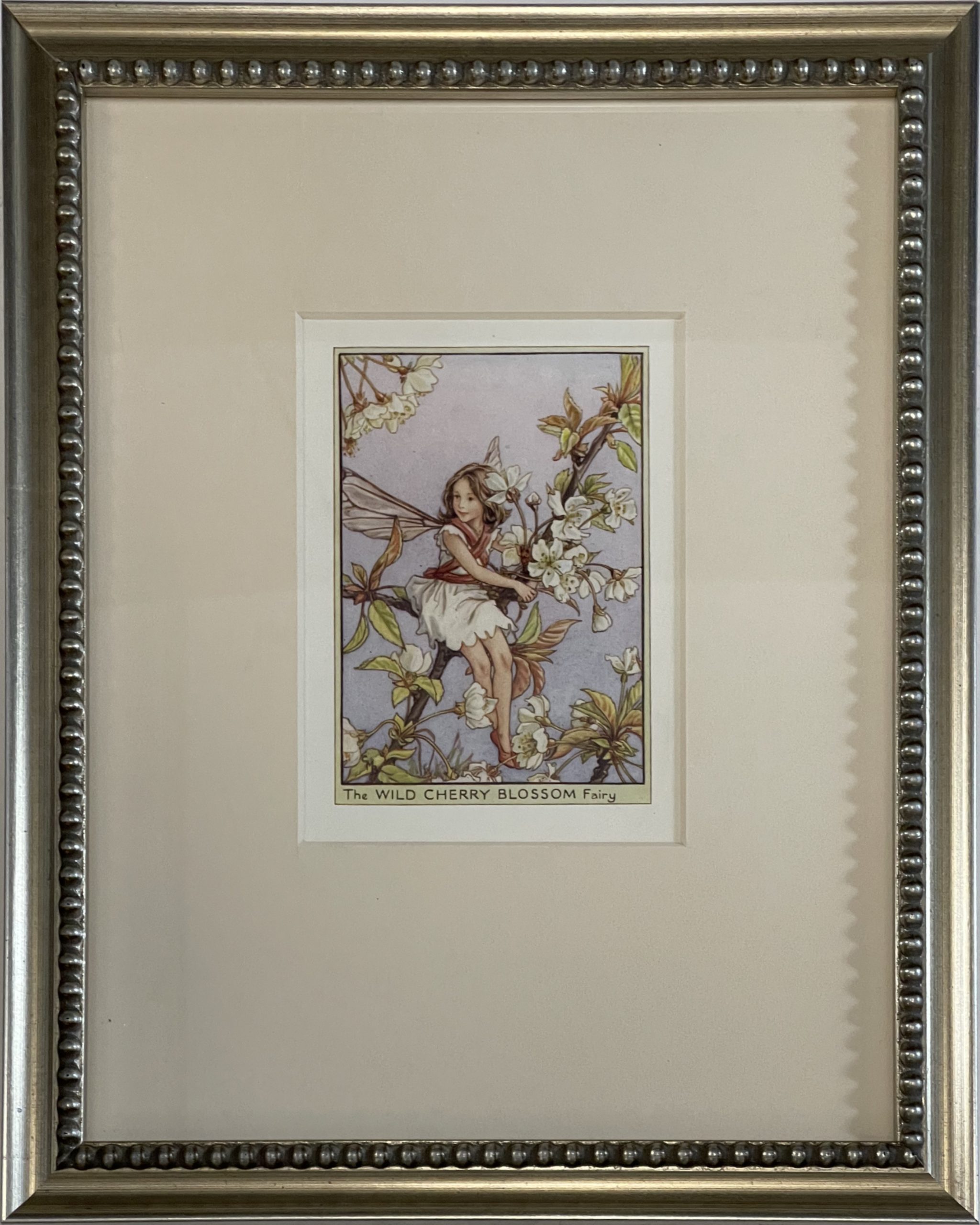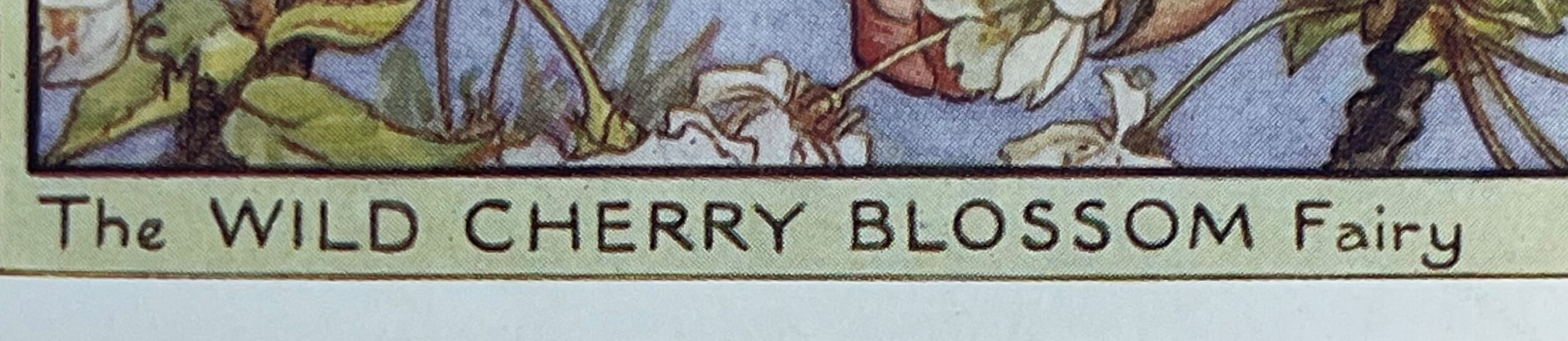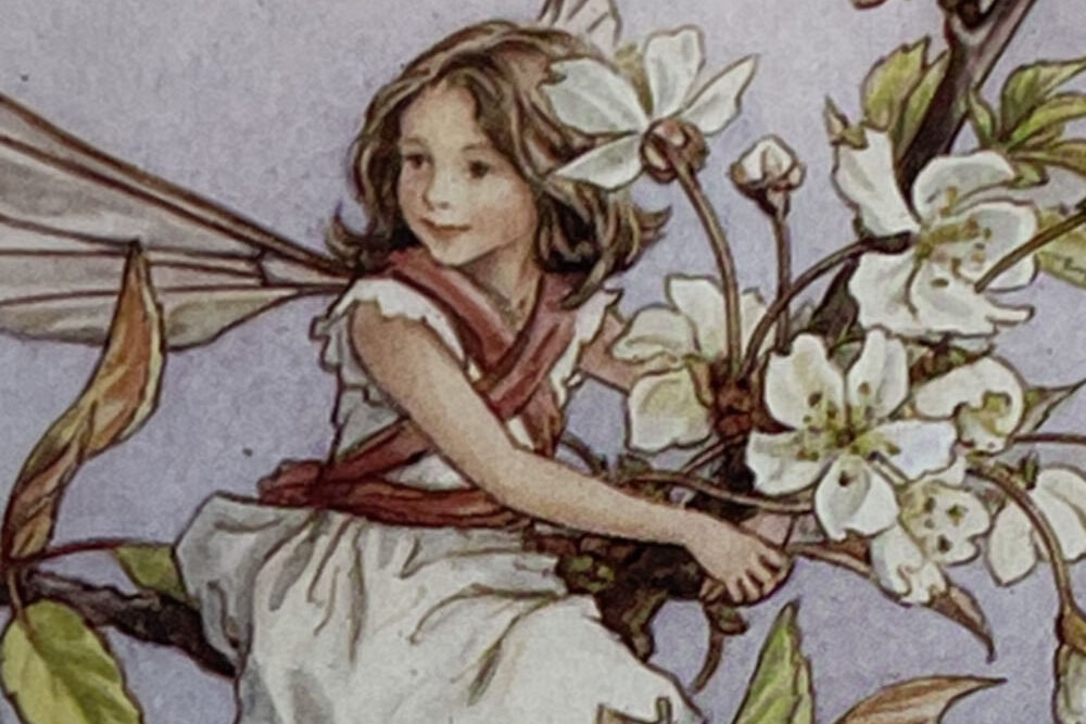 Cecily Mary Barker’s charming illustration of the elusive Wild Cherry Blossom fairy, who flits among the blossoms and helps to keep the tree happy, rarely seen but essential to the health of the tree.