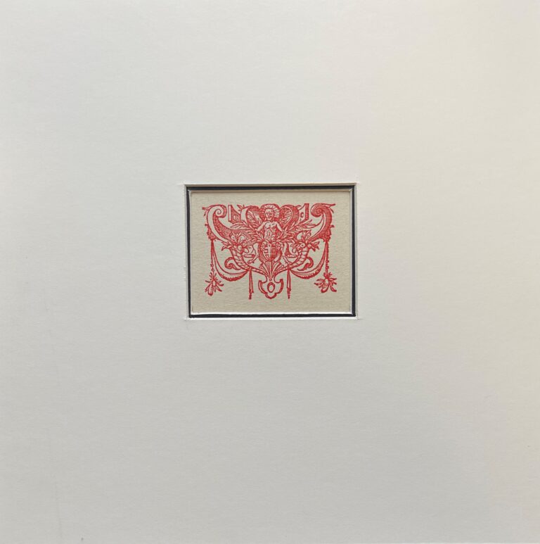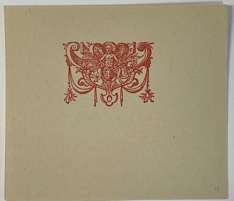 In 1968, Gehenna Press—the fine bindings publisher founded and run by artist Leonard Baskin—published Culs de Lampe, a booklet of unbound leaves of Nideggen and Fabriano blue and white handmade papers on which culs de lampe from Sixteenth and Seventeenth Century books were skillfully printed by Gehenna’s pressman, Harold McGrath.