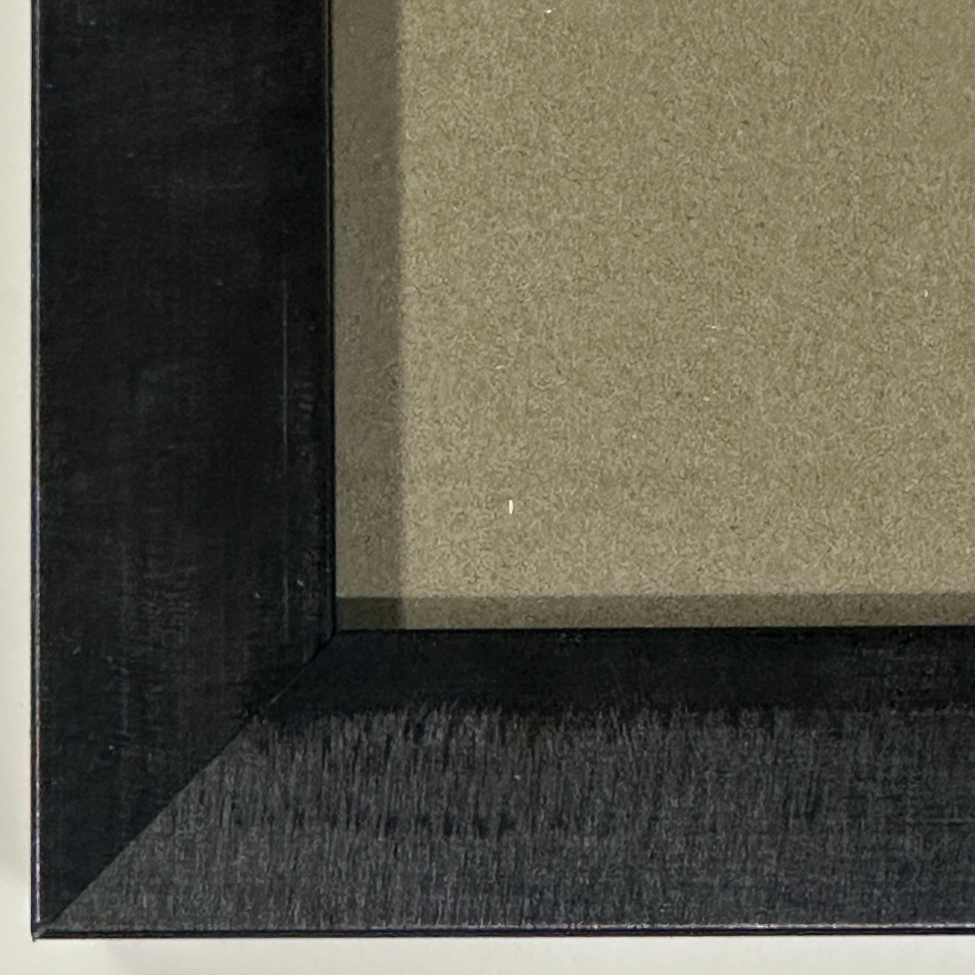 Custom framed behind 99% UV-blocking Plexiglass using strictly conservation-grade materials.