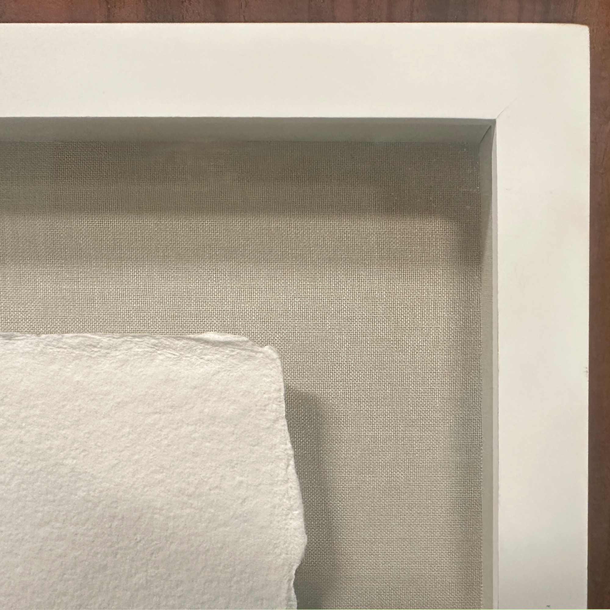 Beautifully float-framed so that it floats both above the cloth-covered support and under the glass. Glazed with UV-blocking and reflection-free Museum Glass. Frame size is 27.5 in. (h) x 47.5 in (w).