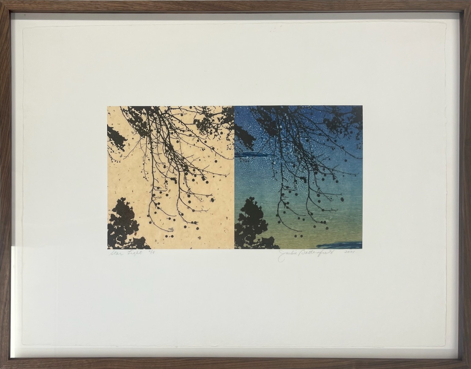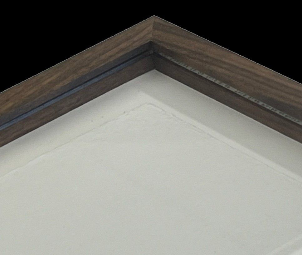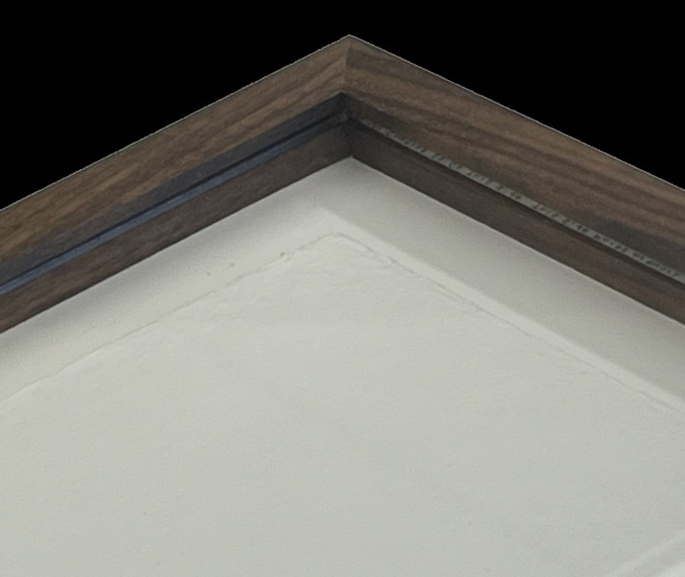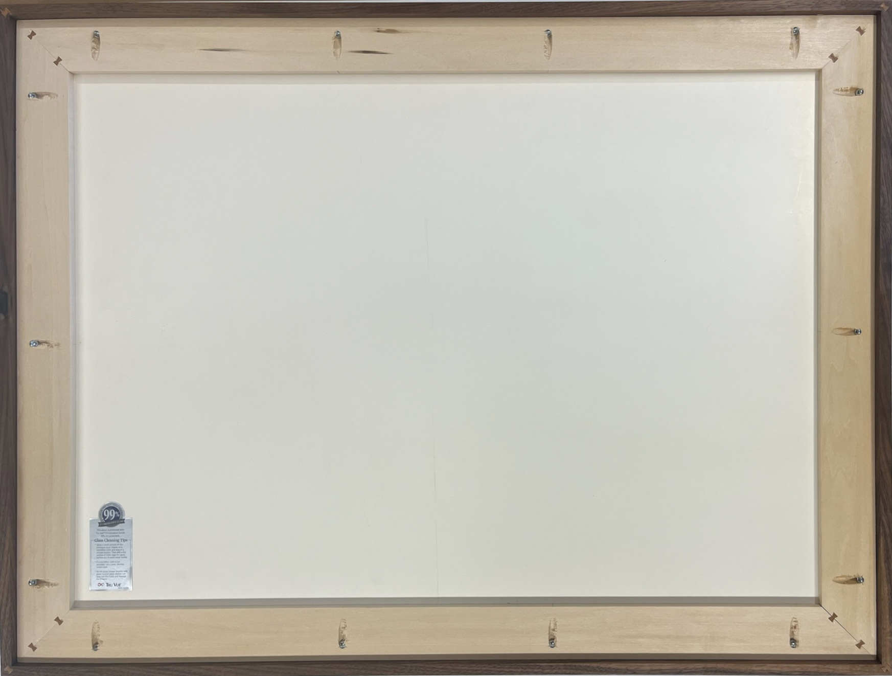 Custom framed using strictly conservation-grade material in a solid Walnut frame behind 99% UV-blocking art glass.
