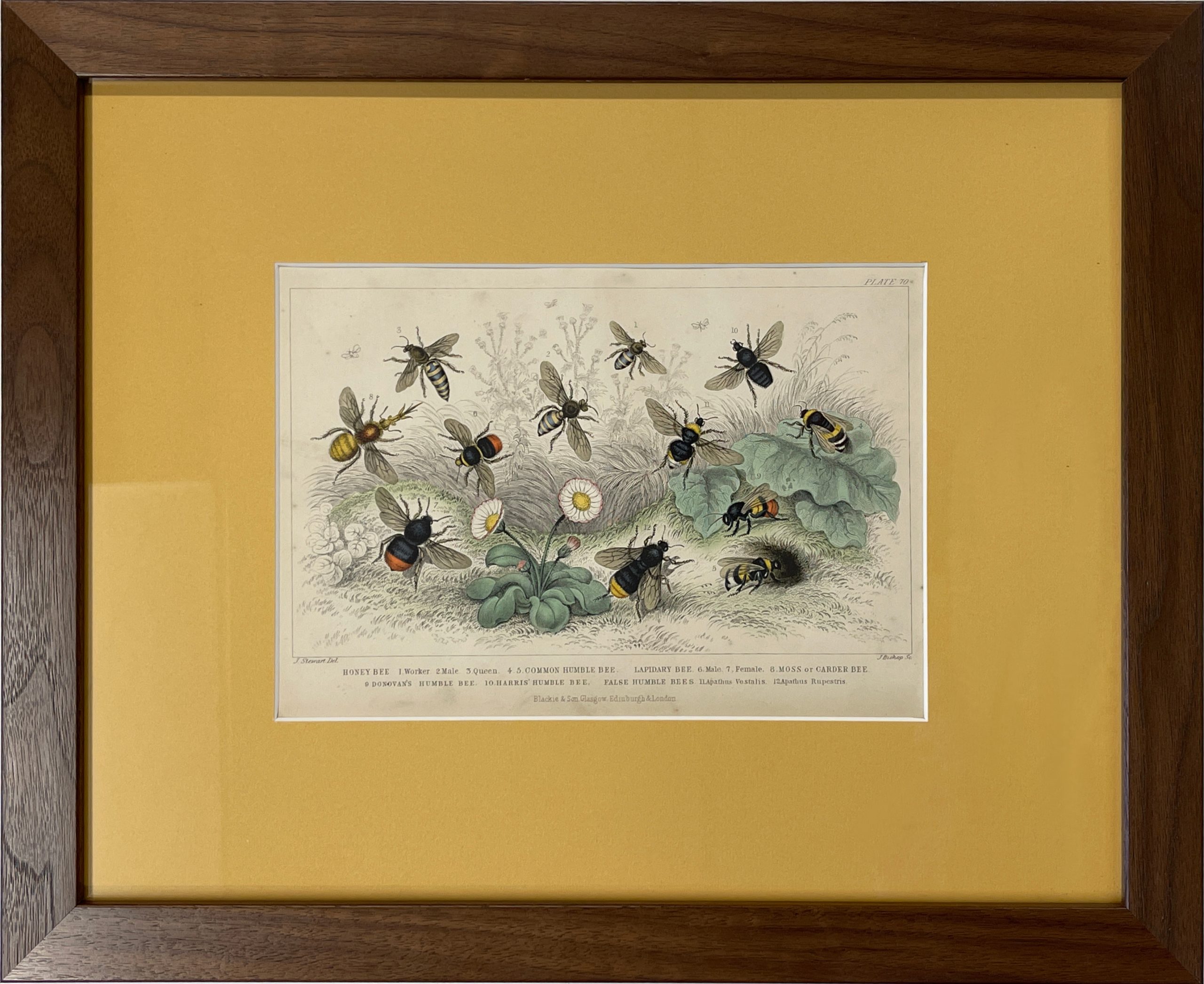 Beautifully custom matted and framed in a solid Walnut frame behind 99% UV-filtering art glass using strictly conservation-grade materials