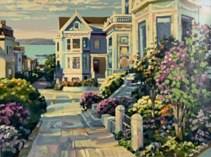 Behrens’ serigraphs are rich and deep in color, with the luminous and glossy finish first developed by Clayton Pond.