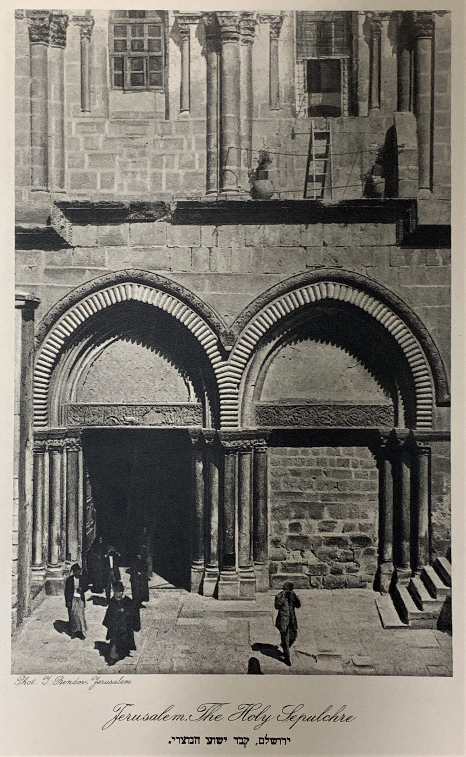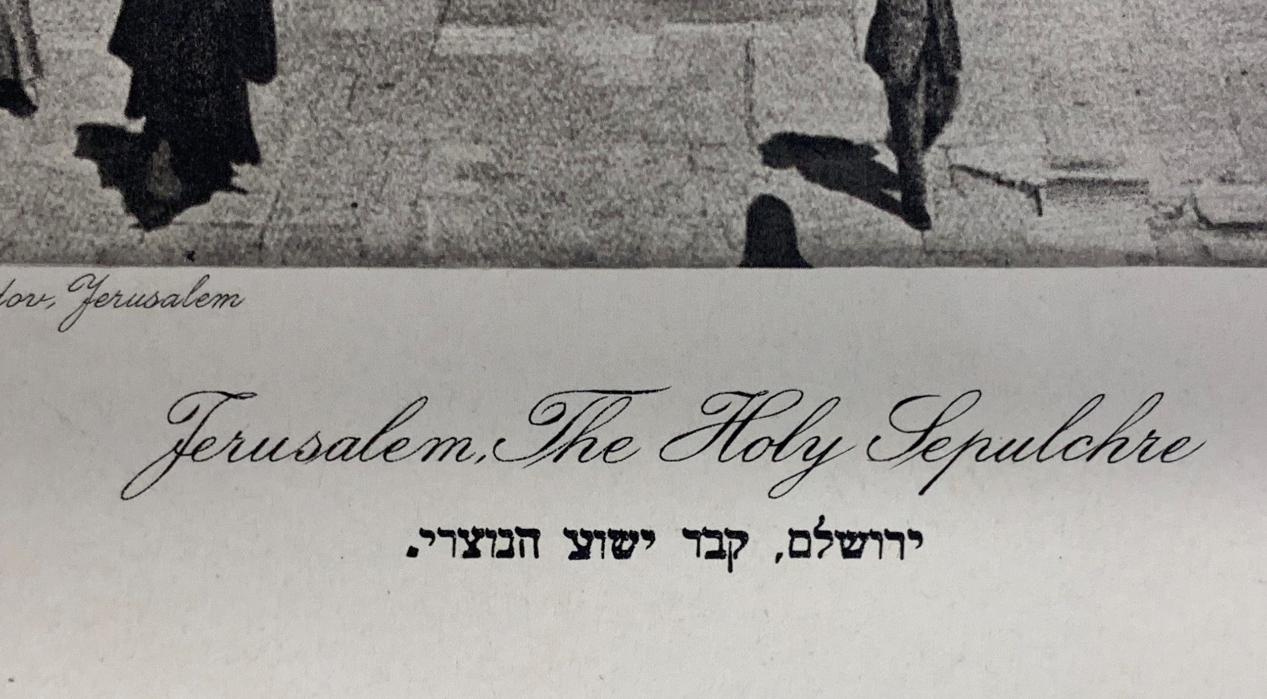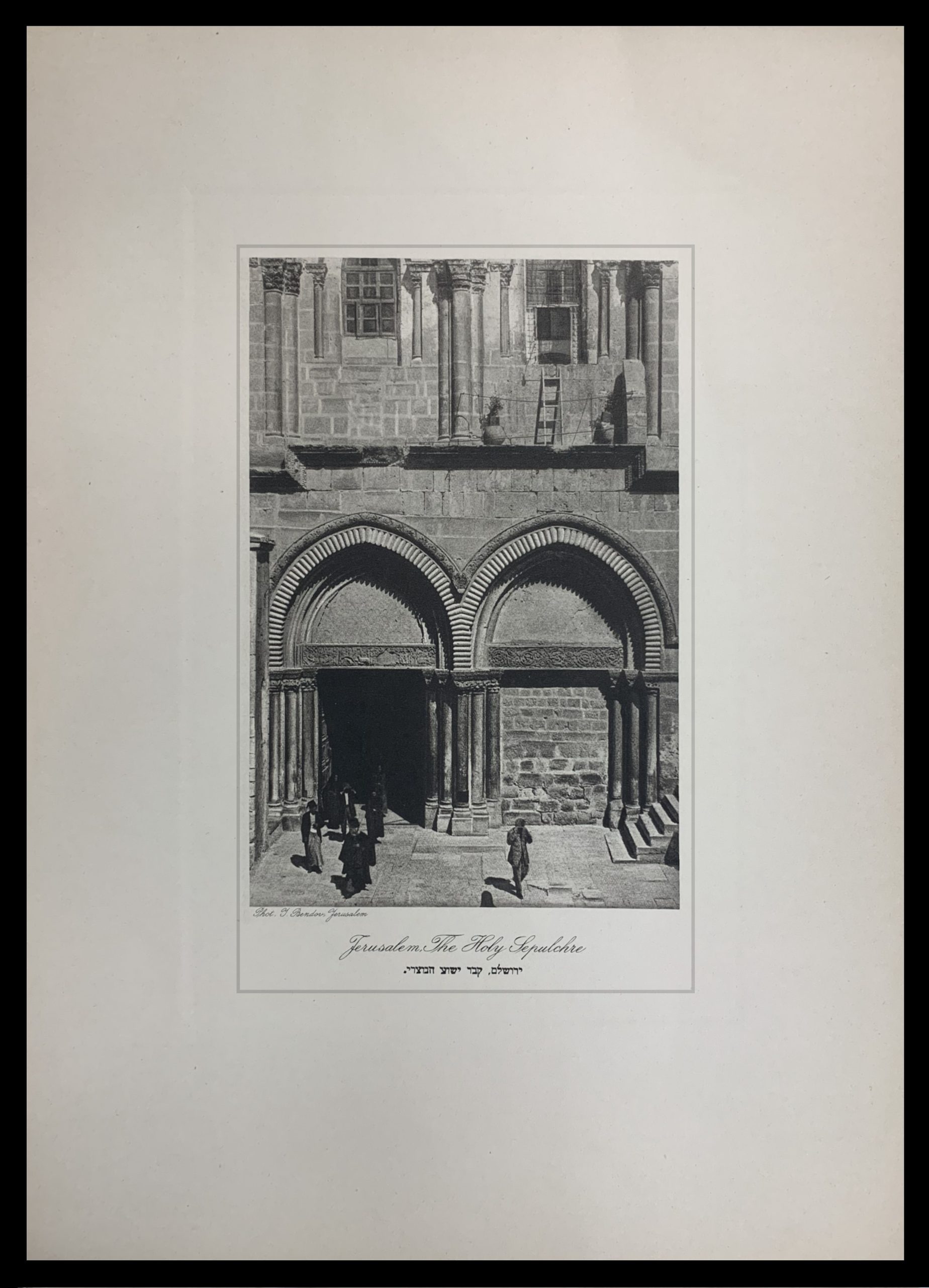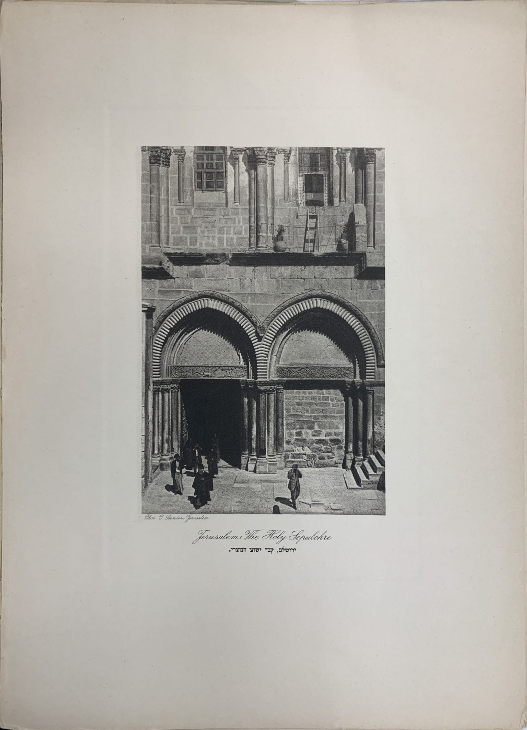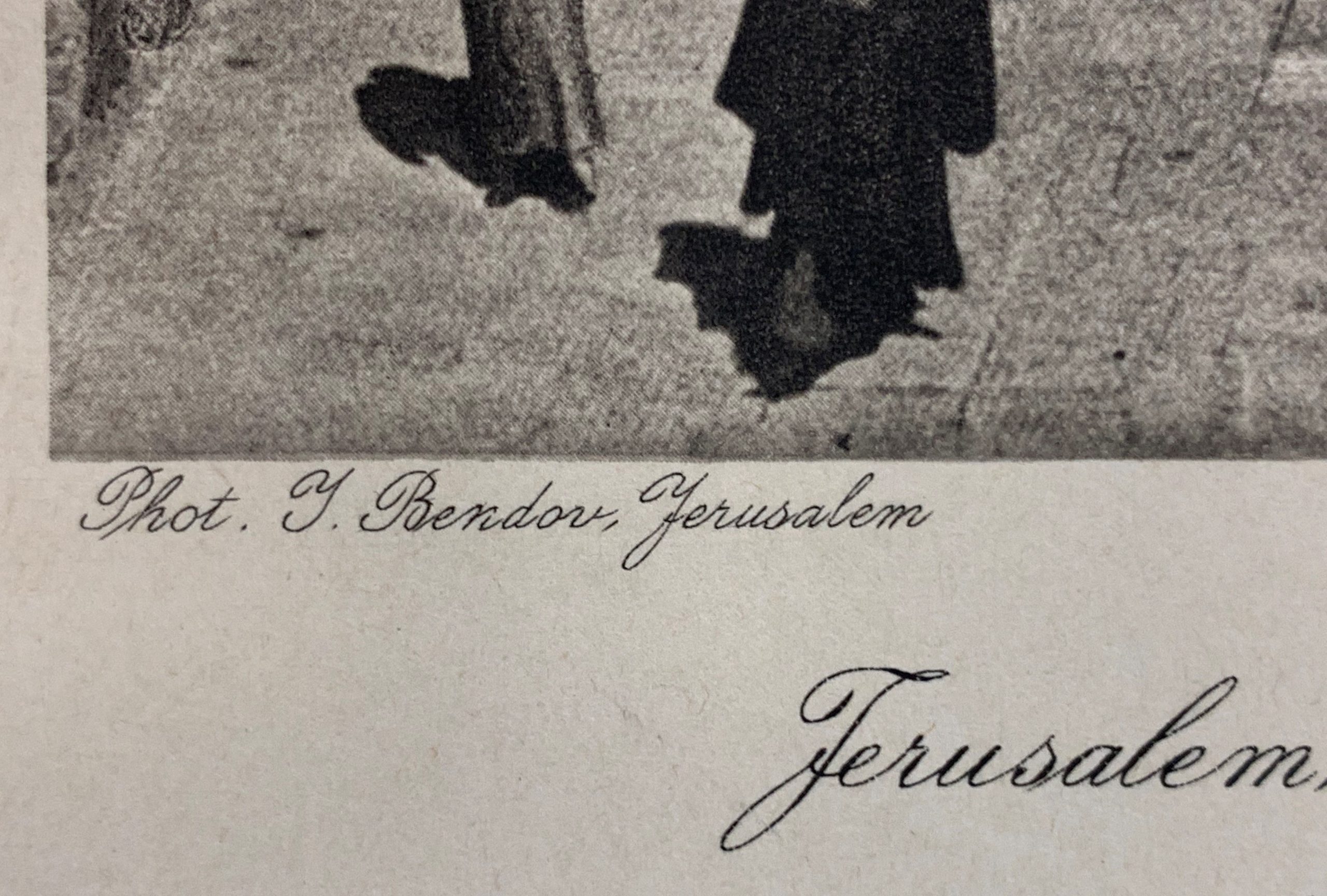 Hanania Brothers were photo technicians on Jaffa Road in Jerusalem, generally thought to be in operation from the 1910s through the 1930s. In 1927 (according to Paris’ Musée d’Art et d’Histoire du Judaïsme), Hanania Brothers published a portfolio of photogravures (also known as héliogravure) from Yaakov Bendov’s photographs of Jerusalem. This work comes from that portfolio, which is now exceptionally rare.
