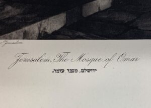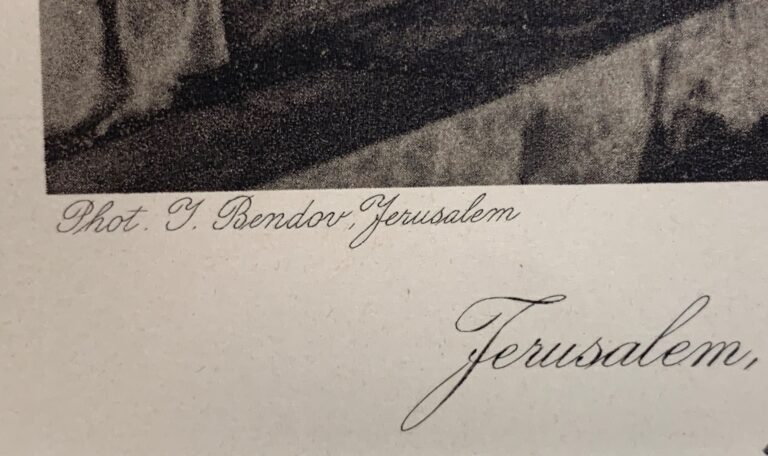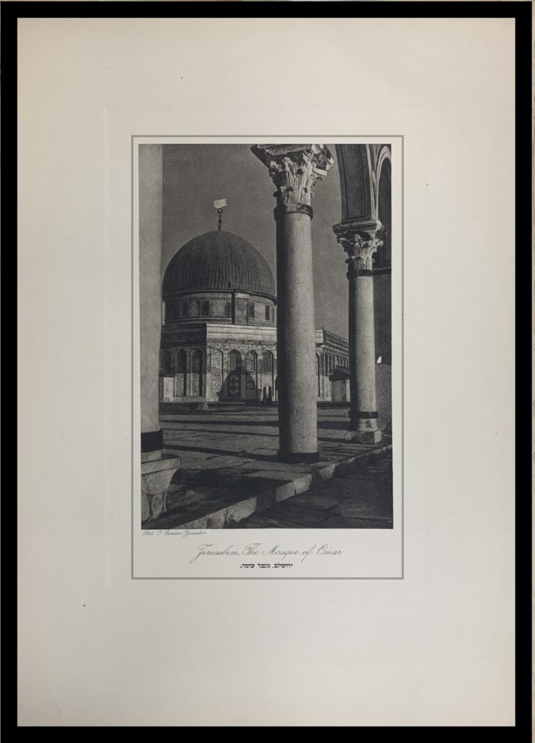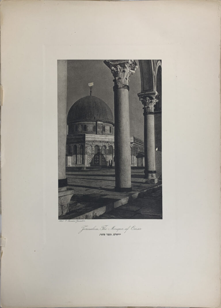 Hanania Brothers were photo technicians on Jaffa Road in Jerusalem, generally thought to be in operation from the 1910s through the 1930s. In 1927 (according to Paris’ Musée d’Art et d’Histoire du Judaïsme), Hanania Brothers published a portfolio of photogravures (also known as héliogravure) from Yaakov Bendov’s photographs of Jerusalem. This work comes from that portfolio, which is now exceptionally rare.