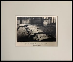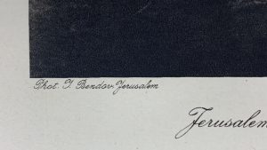 Hanania Brothers were photo technicians on Jaffa Road in Jerusalem, generally thought to be in operation from the 1910s through the 1930s. In 1927 (according to Paris’ Musée d’Art et d’Histoire du Judaïsme), Hanania Brothers published a portfolio of photogravures (also known as héliogravure) from Yaakov Bendov’s photographs of Jerusalem. This work comes from that portfolio, which is now exceptionally rare.