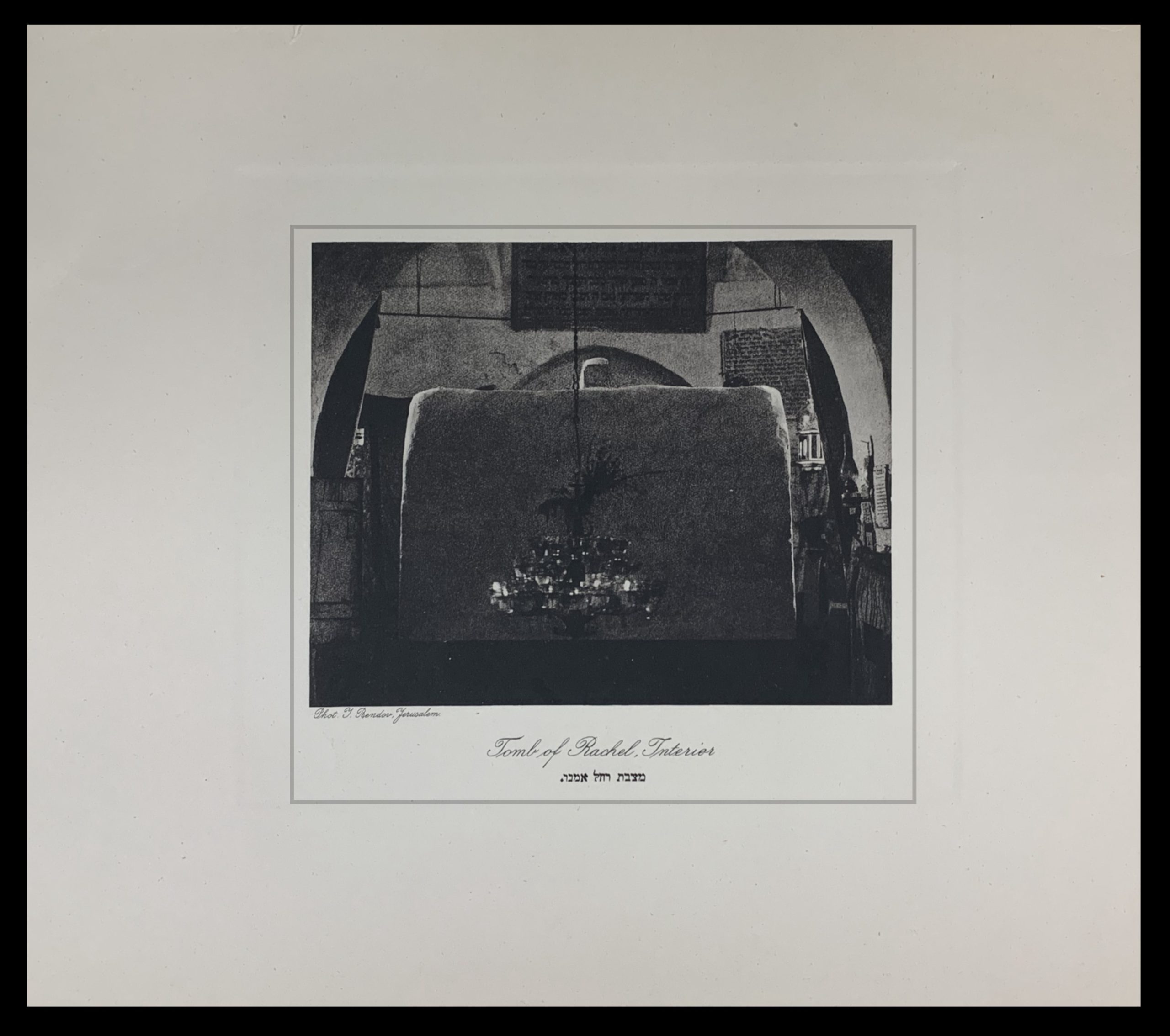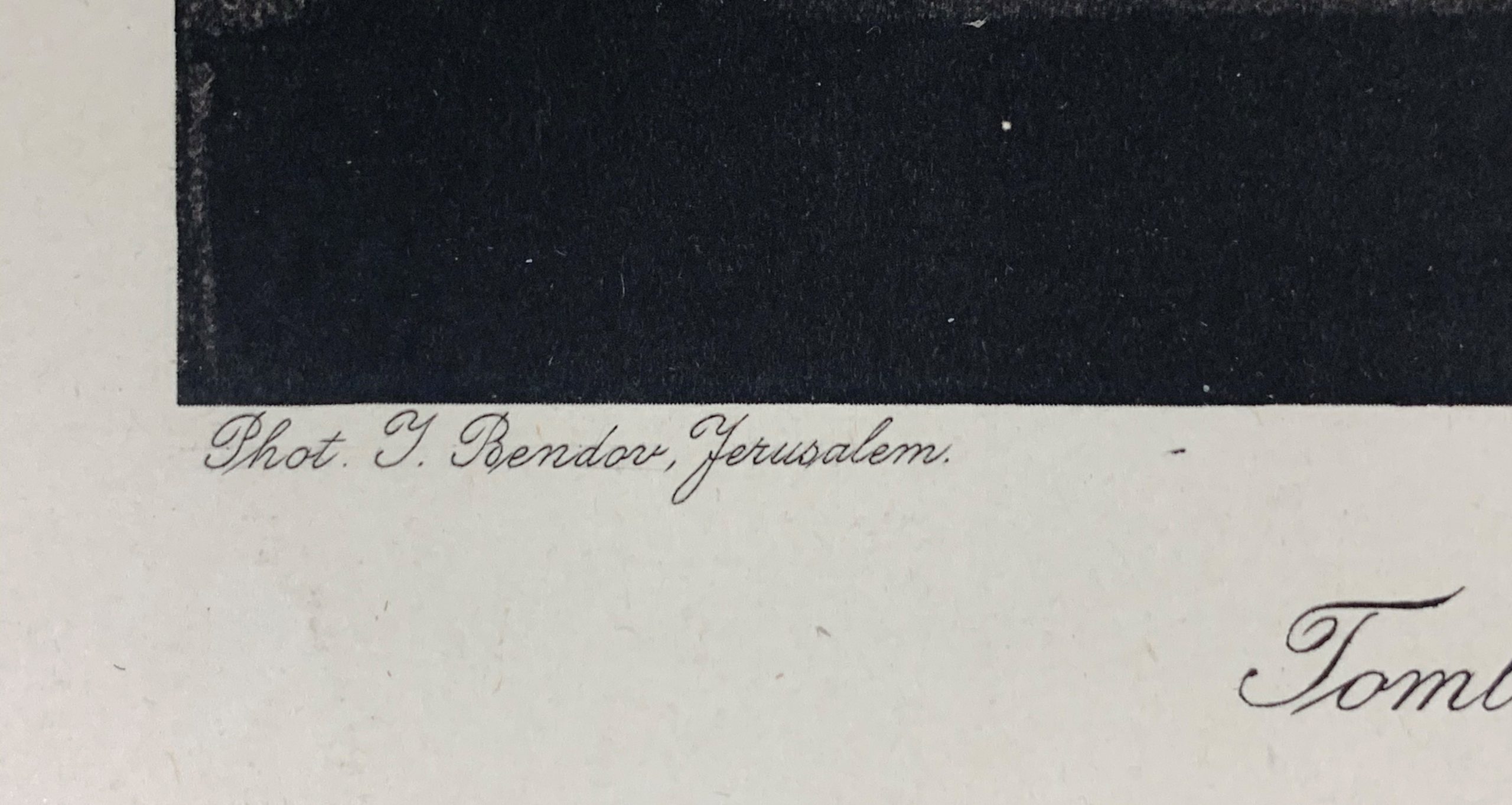 Hanania Brothers were photo technicians on Jaffa Road in Jerusalem, generally thought to be in operation from the 1910s through the 1930s. In 1927 (according to Paris’ Musée d’Art et d’Histoire du Judaïsme), Hanania Brothers published a portfolio of photogravures (also known as héliogravure) from Yaakov Bendov’s photographs of Jerusalem. This work comes from that portfolio, which is now exceptionally rare.