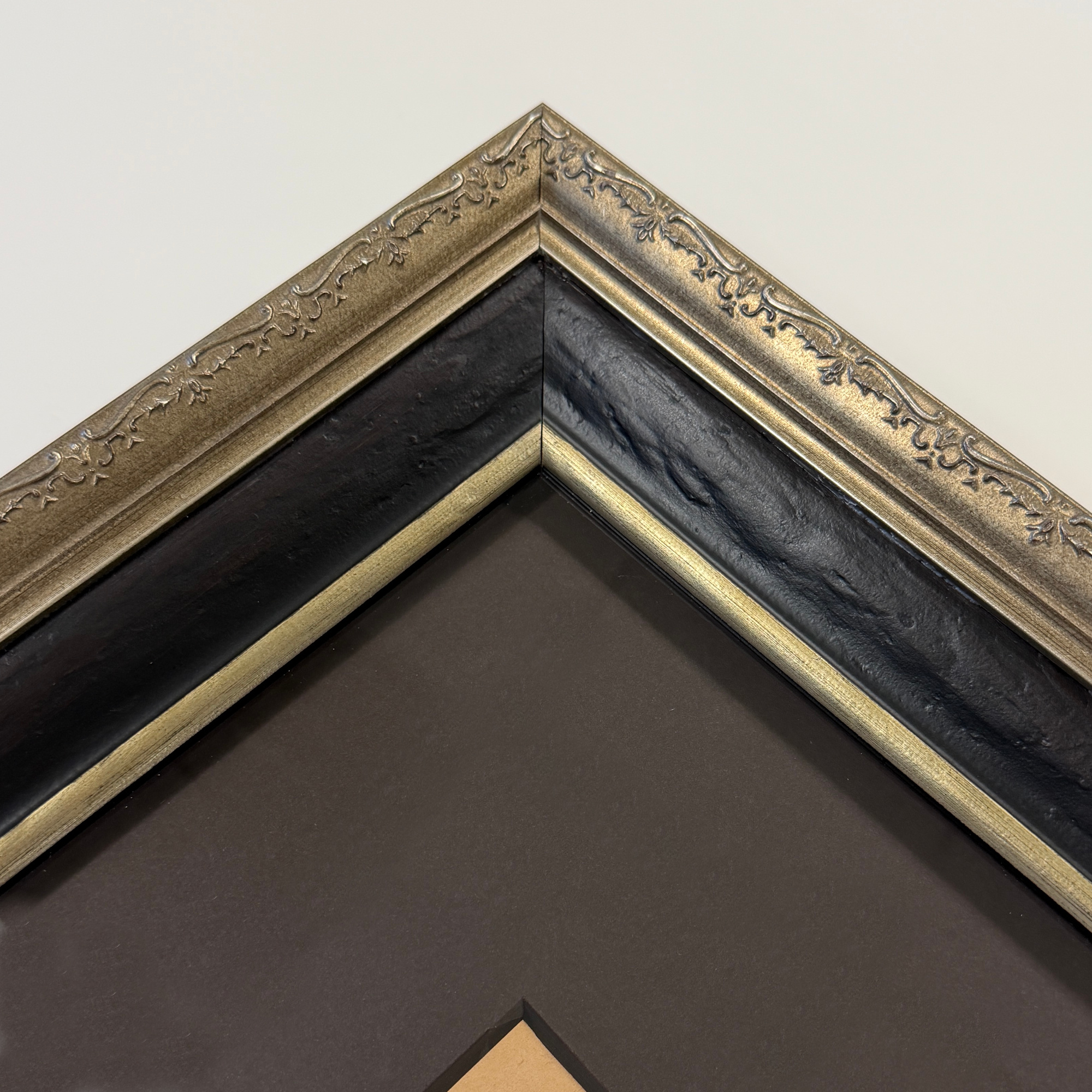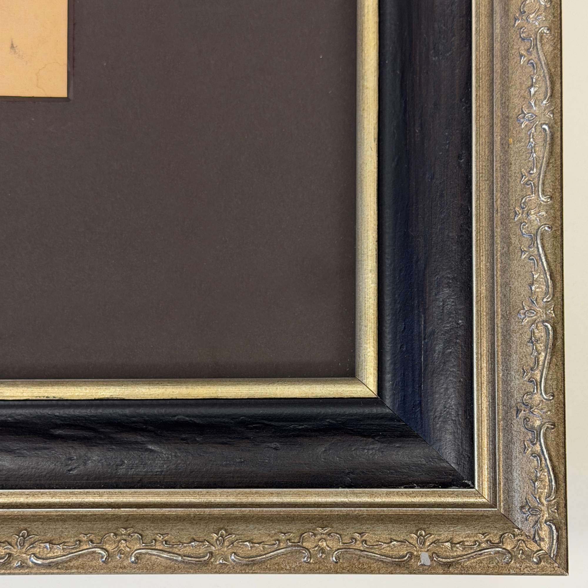 Custom framed in a fine wood frame using strictly conservation-grade materials behind 99% UV-blocking art glass.