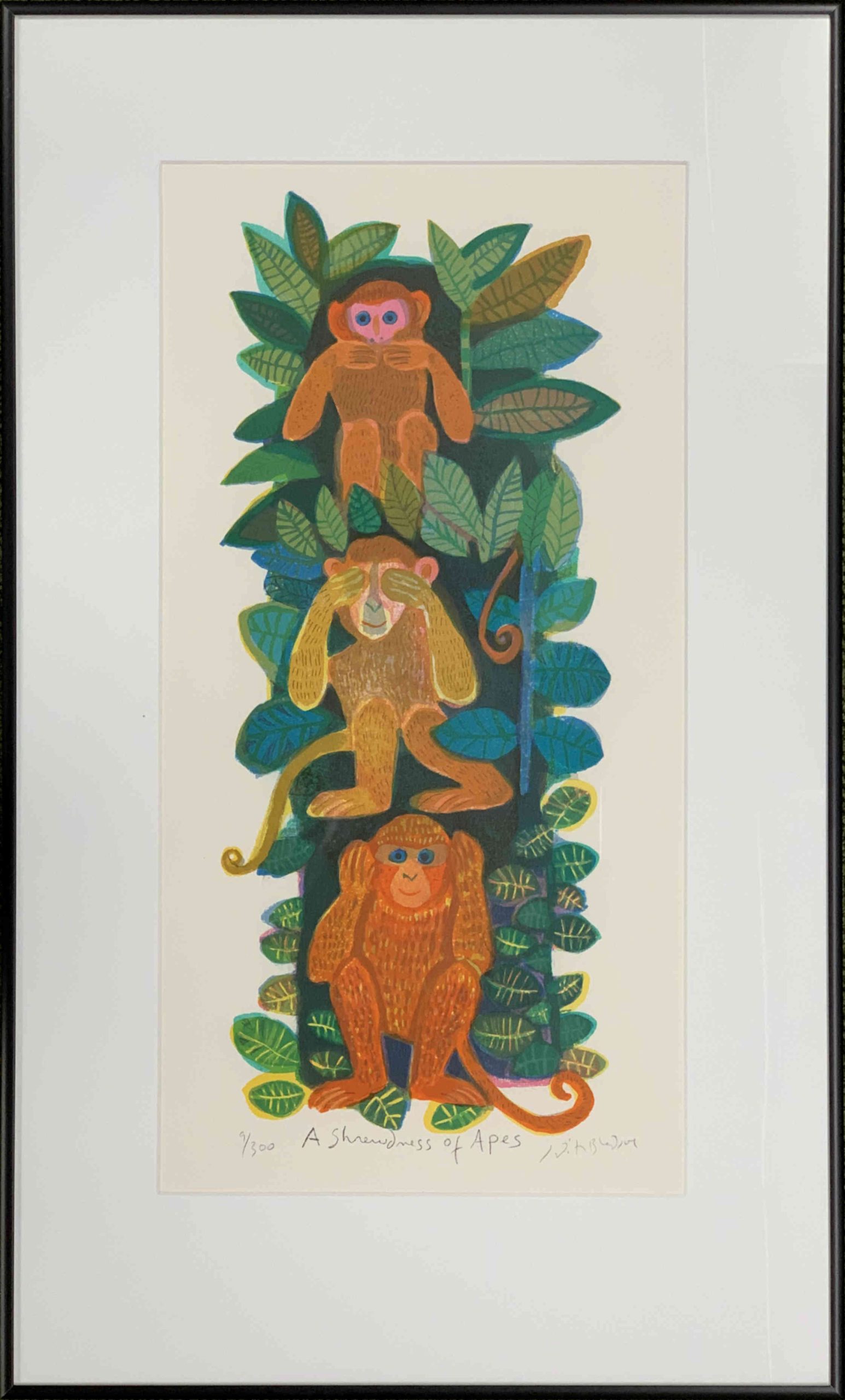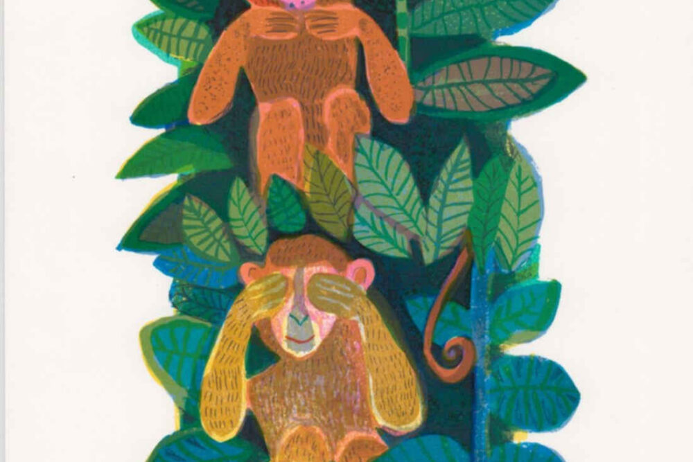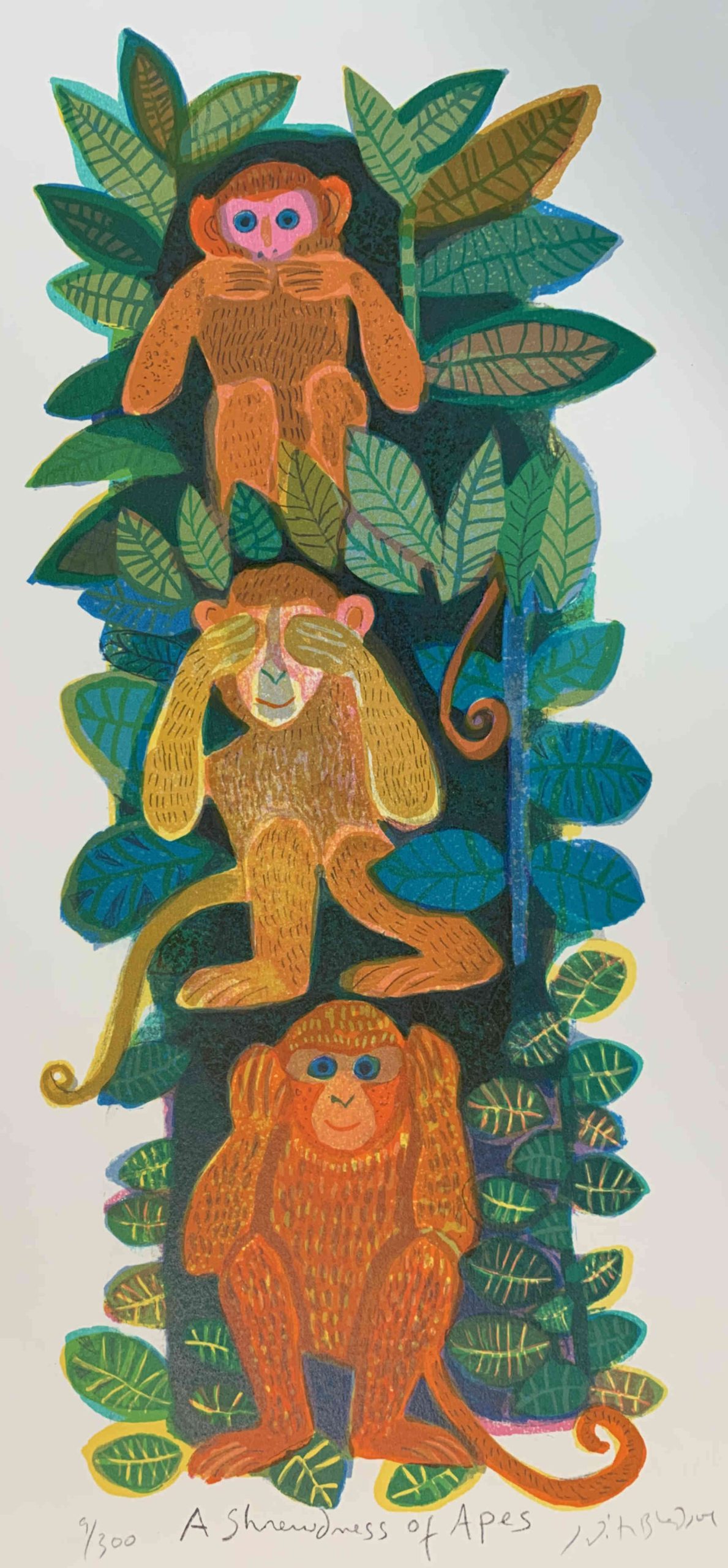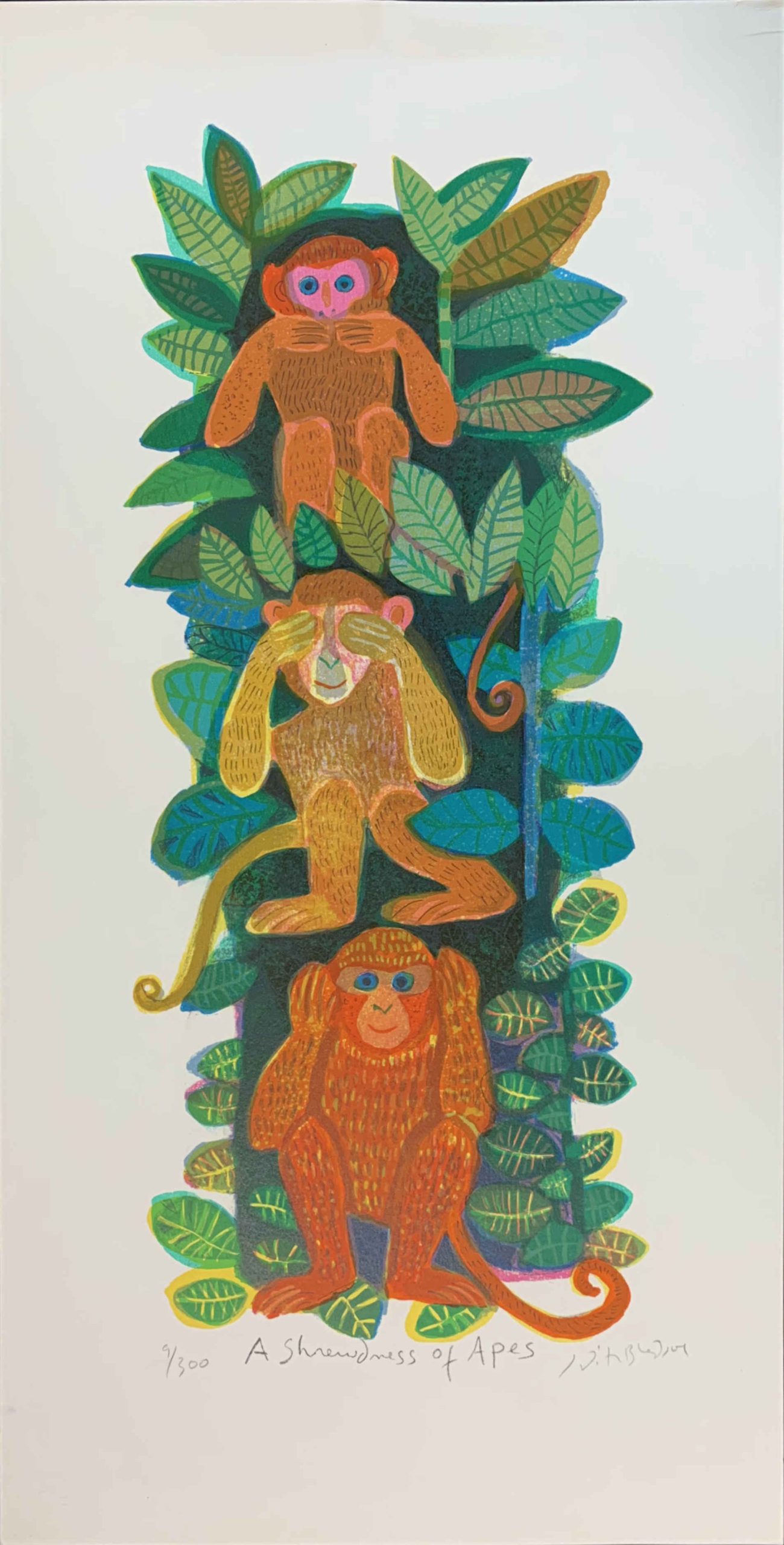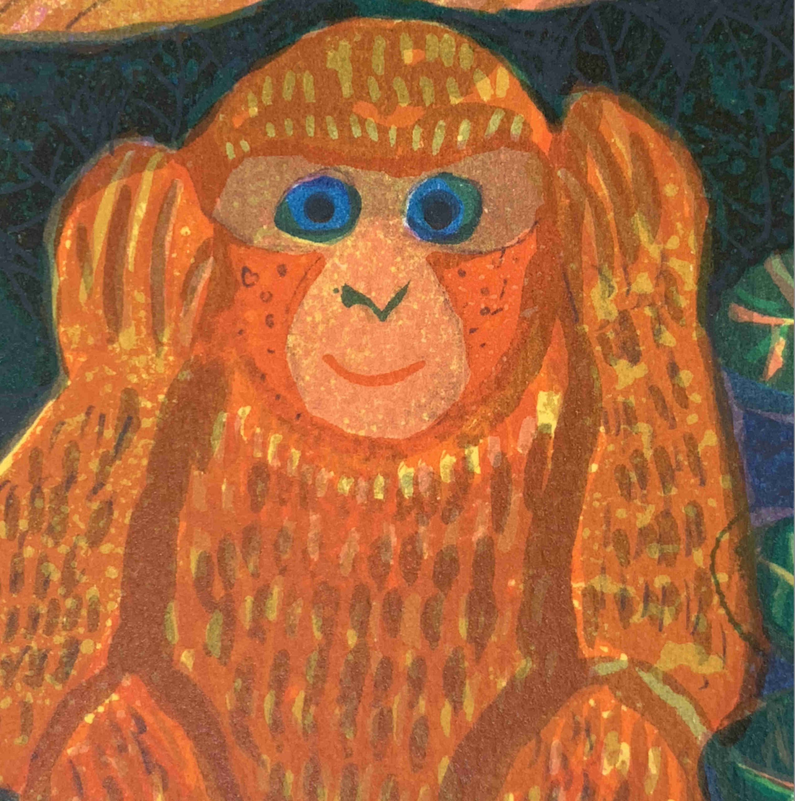 Judith Bledsoe’s imagination and whimsey visit the animal kingdom! Three monkeys—see no evil, hear no evil, speak no evil. A great gift for new parents, a teacher, or to decorate a nursery!
