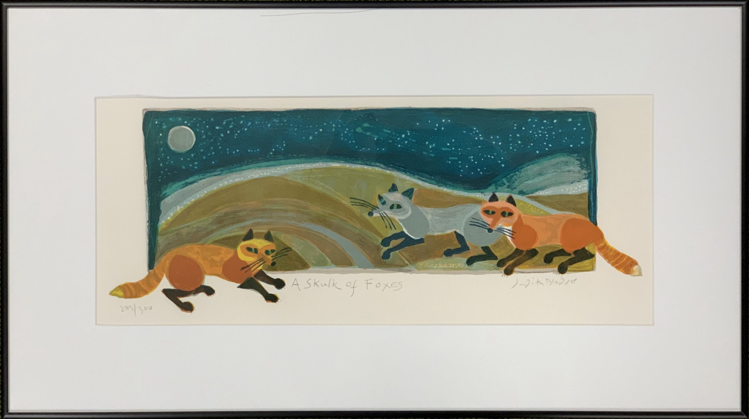 Judith Bledsoe reveled in laughter, even when making real social statements. This print, though, is just about fun. It is a delightful picture, perfect for a child’s room, nursery, or play room.