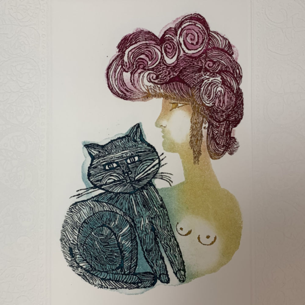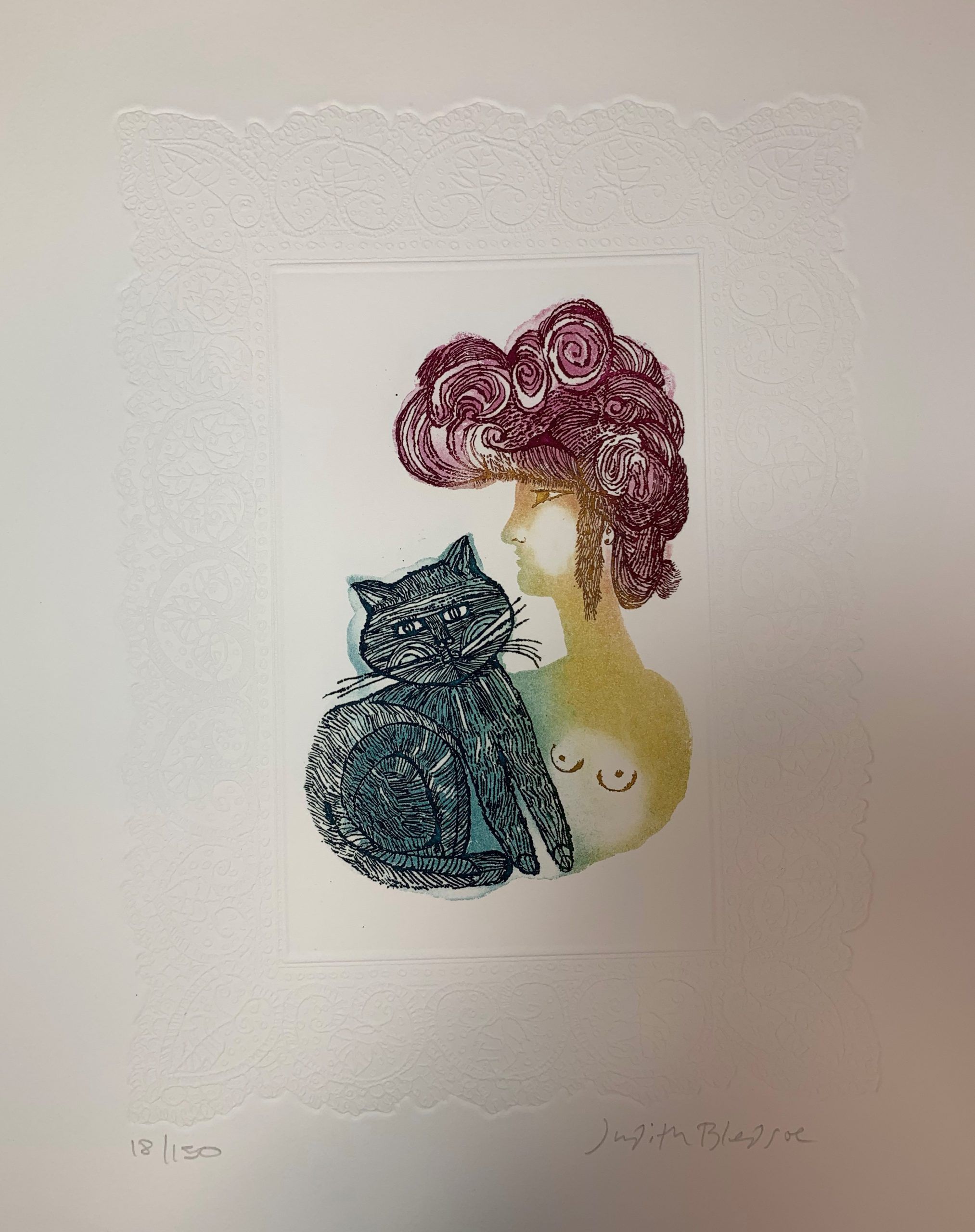 A delightful depiction of a gallant (and quite possibly batty) lady and one of her animal friends, with Judith Bledsoe’s characteristic humor and vitality. Bledsoe always celebrated her own individuality and treasured peculiarity in others!