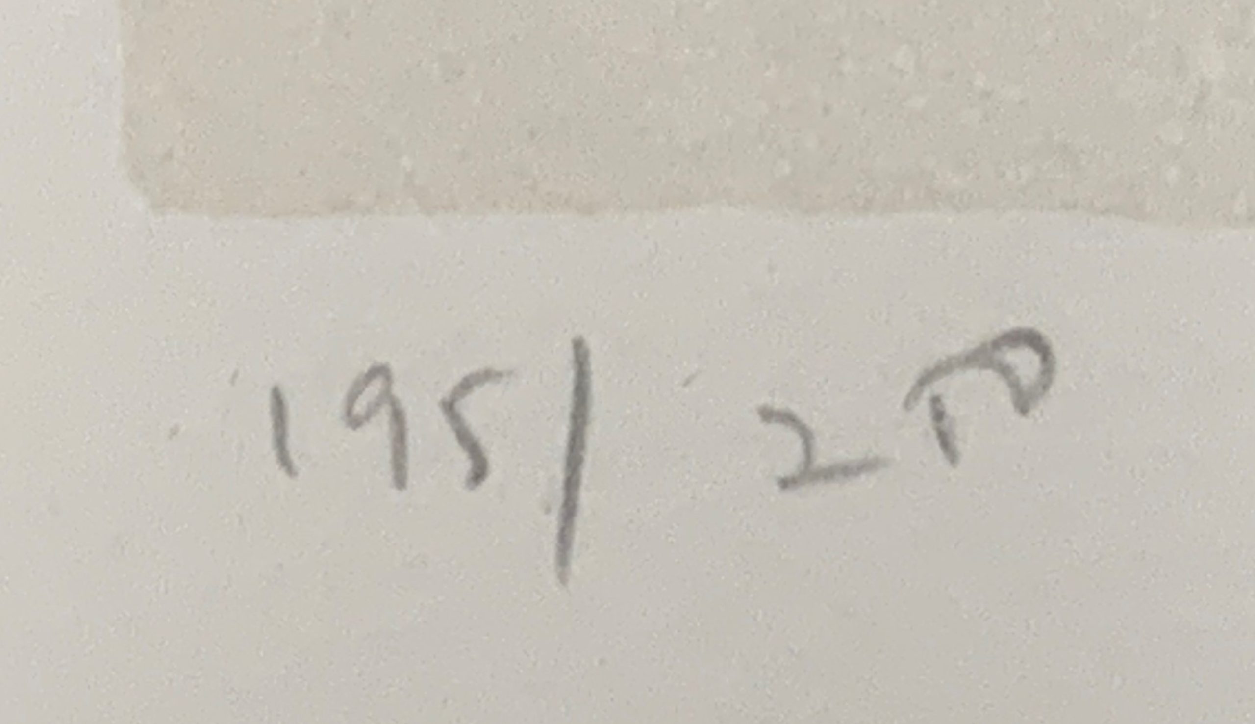 Hand-signed and dated by the artist in pencil en recto lower right. Titled en verso lower right. Numbered en recto lower left. Bearing the blind impression of Circle Gallery.