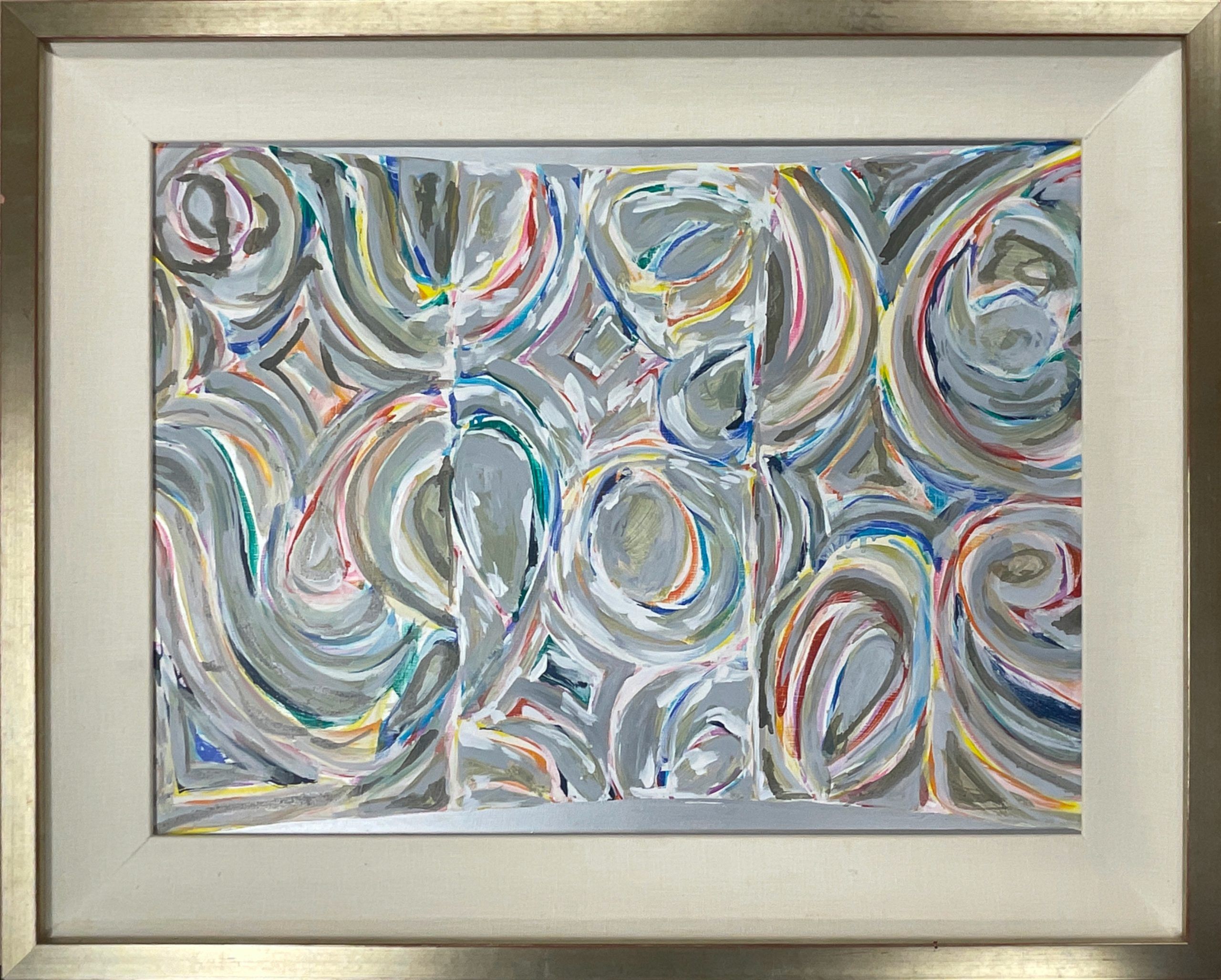 Burton’s colorful and harmonious paintings and graphic work are composites of his vocabulary of organic shapes that flow together in undulating patterns resulting in unique multi-colored abstractions. With a background in architecture, many of Burton’s paintings stress visual order. Hard-edged geometrical forms dominated his early canvases, but later a more organic patterning emerged, as seen in this work.