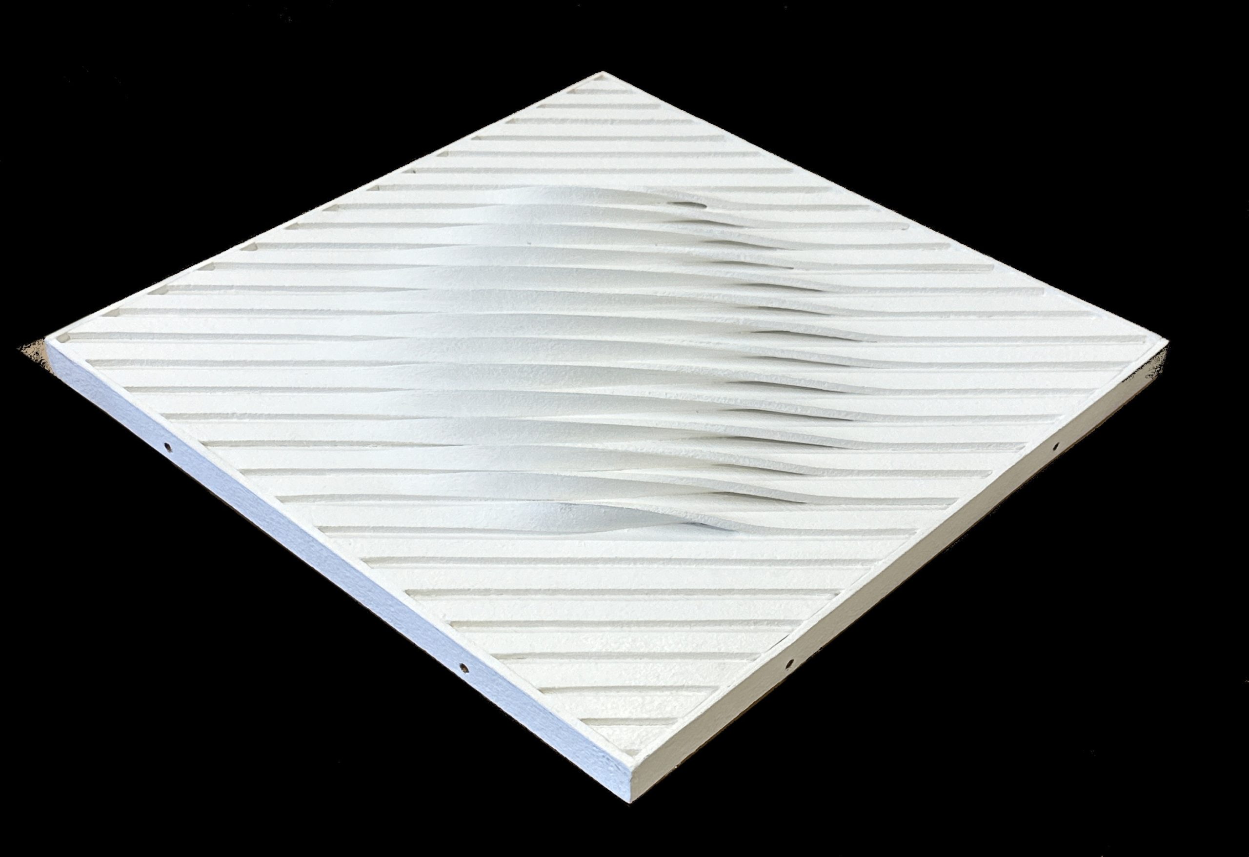 This work is an early example of the reflected-light three-dimensional sculptural constructions which would be the focus of Melvin F. Butor’s life’s work. It is remarkable because thought it was constructed very early in Butor’s career, it demonstrates remarkable maturity in vision and construction. It is an exemplar of his work, demonstrating the interaction of material and light which is found in all of Butor’s work—but in this example pared down to its very essence.