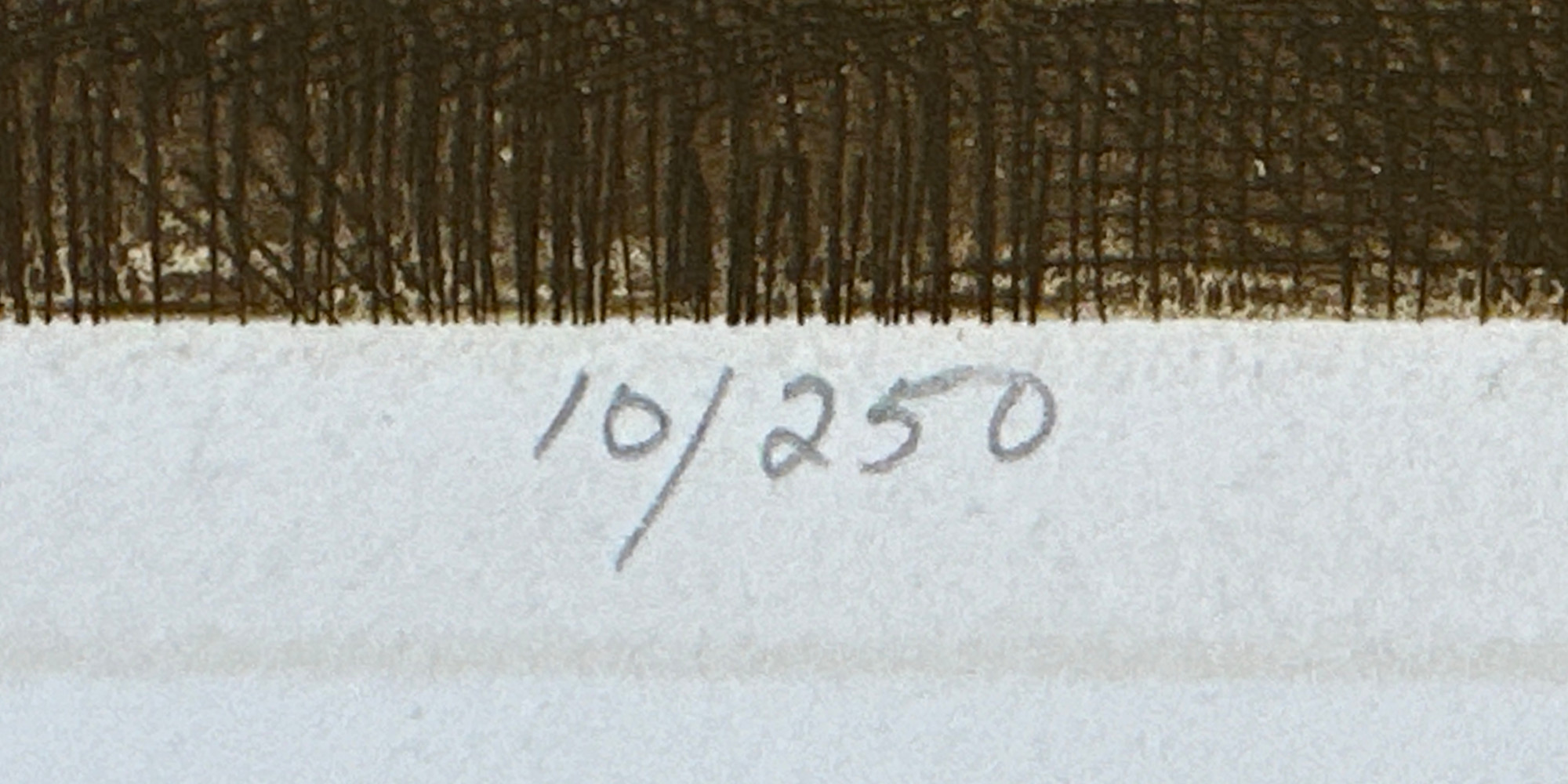 The image is 12 × 8 3/4 in. on a sheet 16 3/8 × 12 3/8 in. and in a frame 19.25 x 14.75 in.
