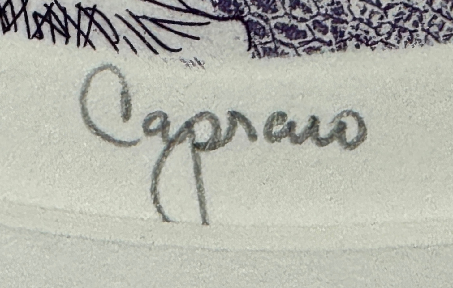 Custom framed behind 99% UV-blocking art glass using strictly conservation-grade materials.