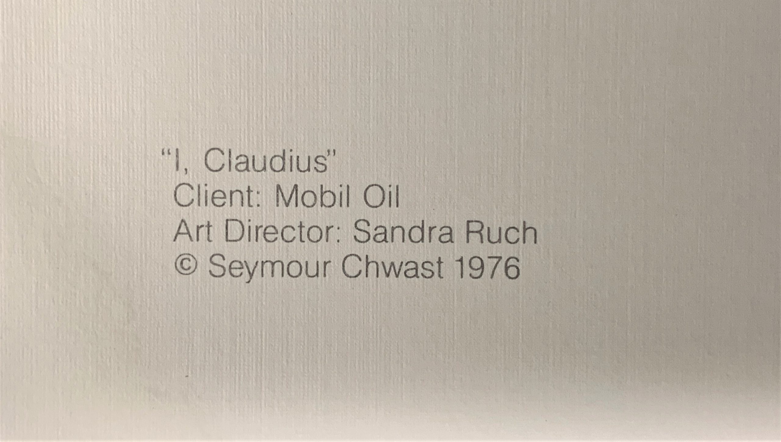 This work, called “I, Claudius”, from that collection, was created in 1978 for Mobil Oil to publicize the public television production which Mobil sponsored.