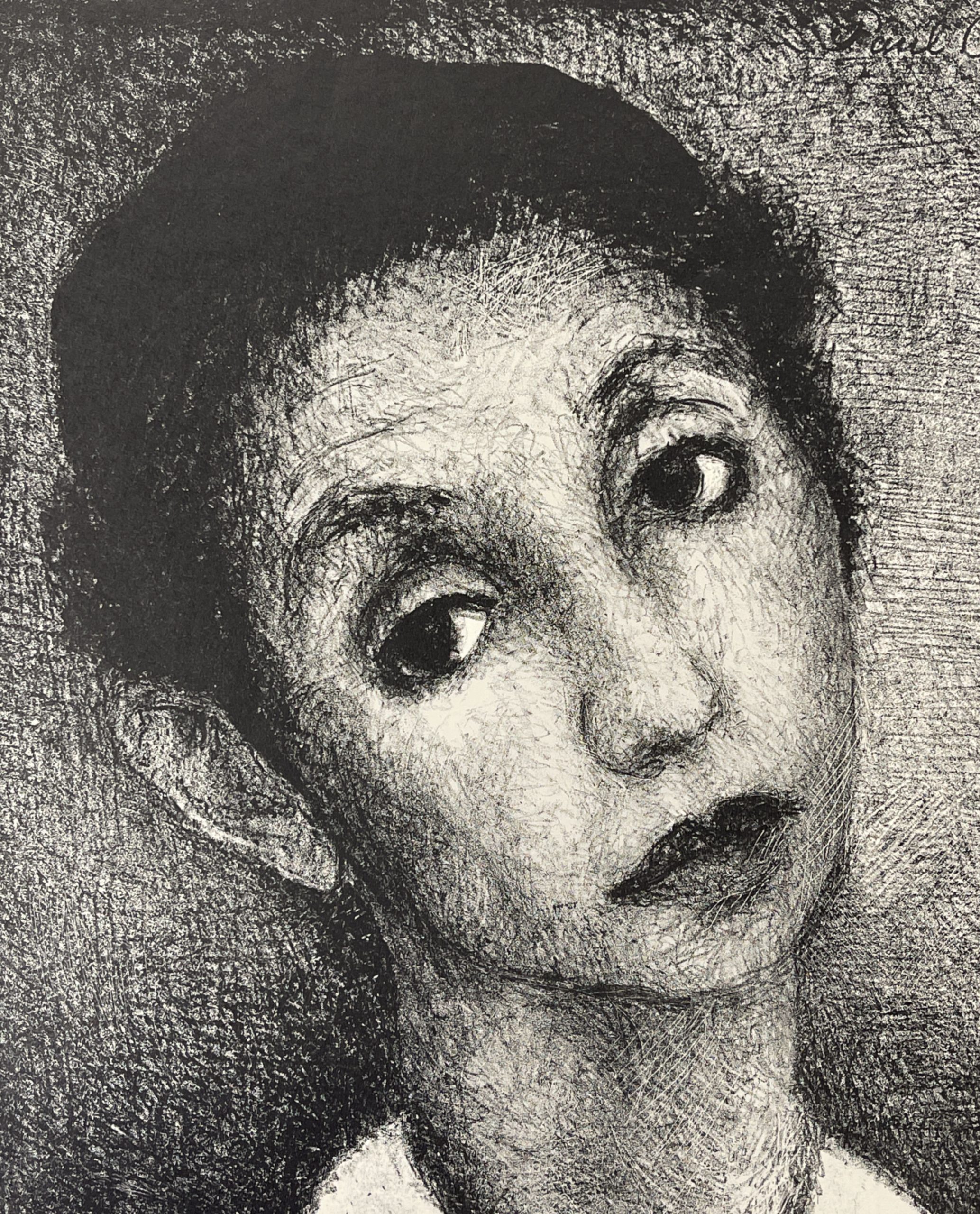 This lithograph is a powerful and evocative portrait by Paul Citroen of the great entertainer Chaya Ruchel Goldstein. Citroen had a remarkable ability to capture his subjects’ personality and history, as he plainly has done here.