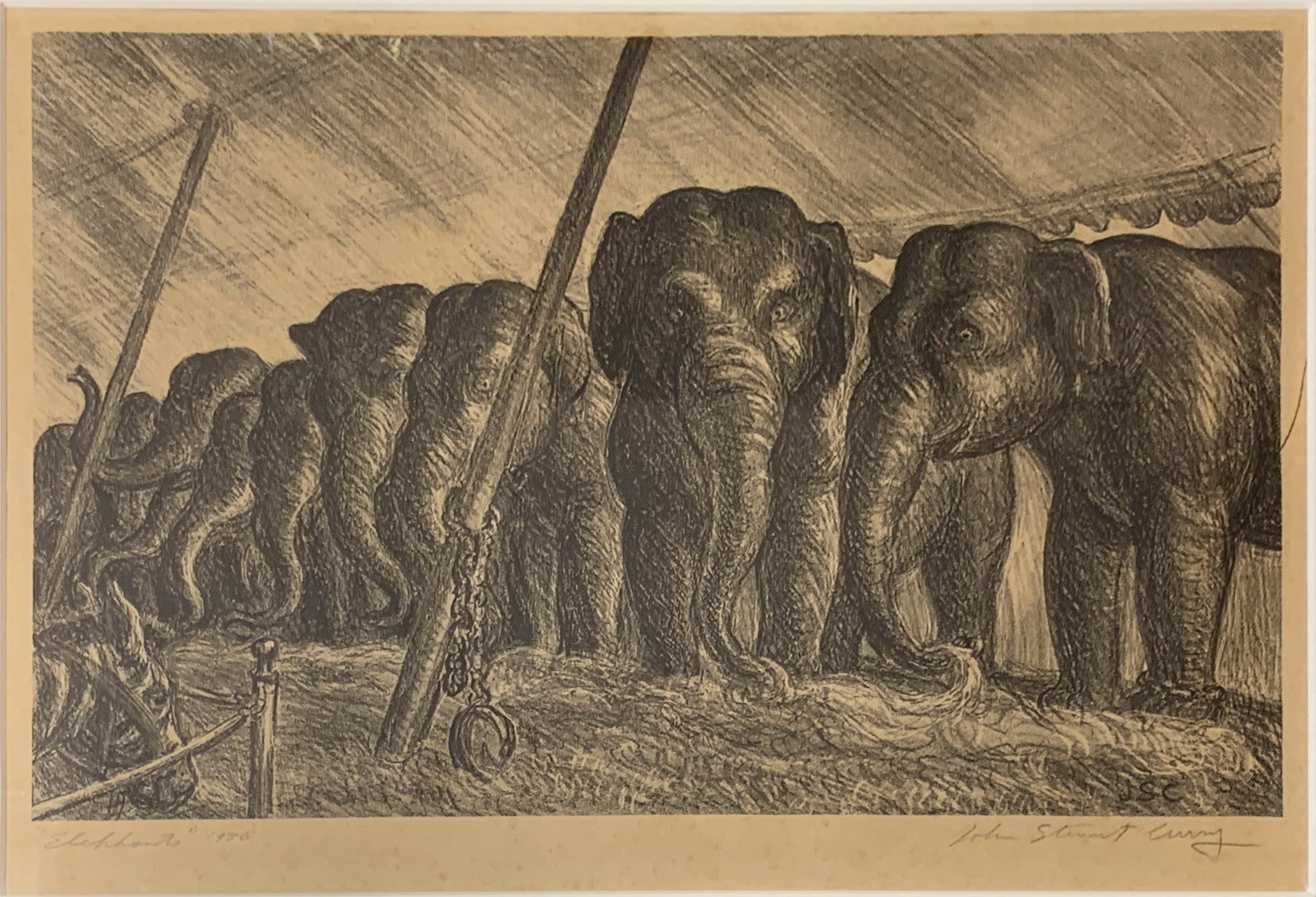 An example of this print is held by the Smithsonian American Art Museum.  Circus Elephants was printed in Life magazine in 1943.