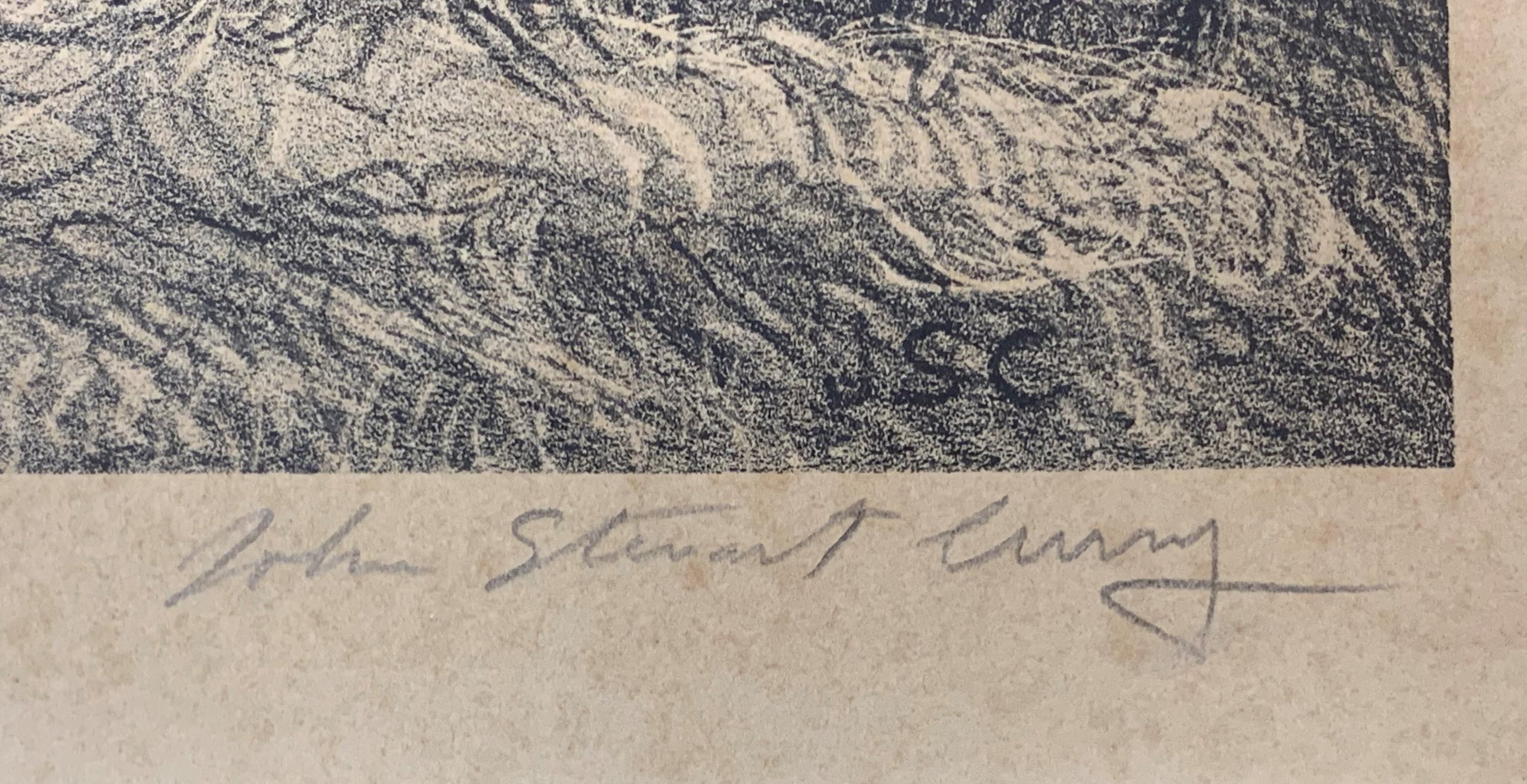 This lithograph by John Steuart Curry was made from the oil on canvas which is held by the National Gallery of Art.  (That webpage is worth looking at for Robert Torchia’s excellent essay about the work.)