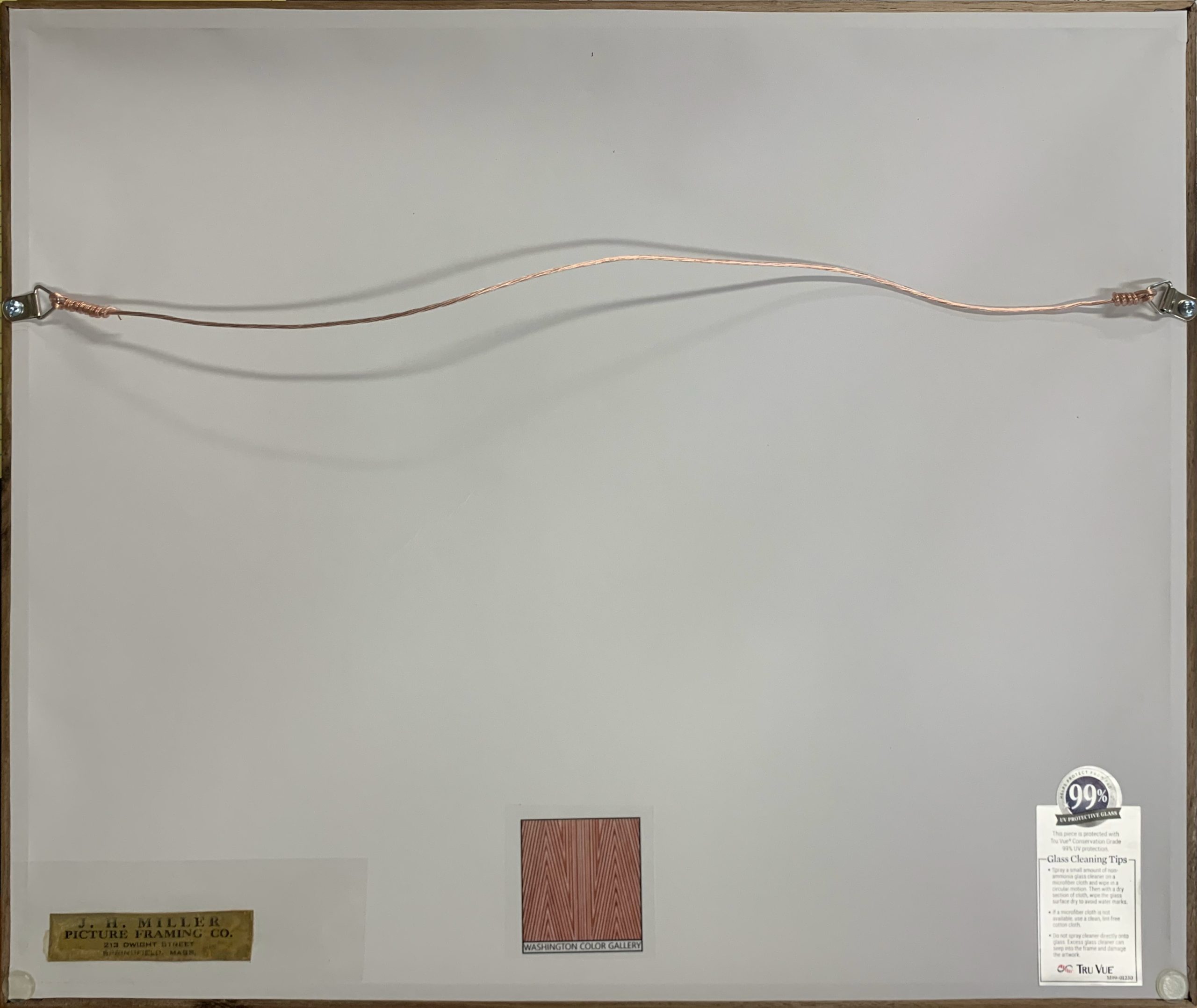 This work is custom matted and framed in a solid walnut frame behind 99% UV-filtering conservation glass. All conservation materials.