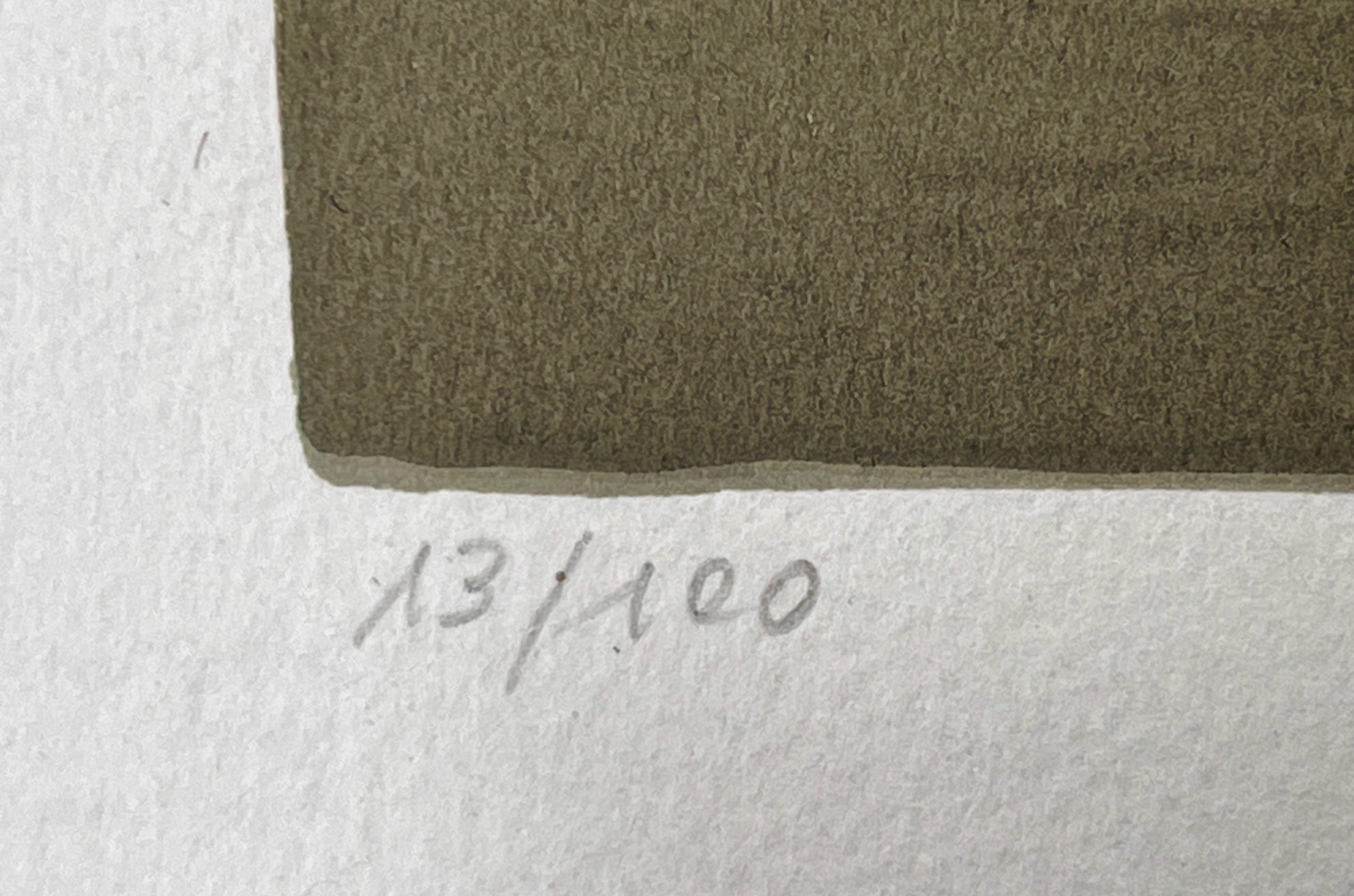 Hand-signed by the artist, in pencil, en recto lower right, editioned lower left, and titled lower center. Bearing the blind stamp of the gallery lower right (behind mat).