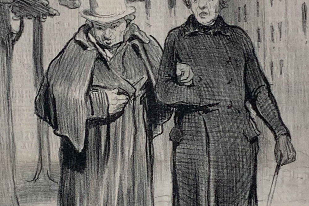 Like Daumier’s “Les bons bourgeois” series, the prints of Tout Ce Qu’on Voudra offer pensive observations of life, as in this work in which an elderly couple remembers their youth, perhaps recalling when they were considered the young rebels.