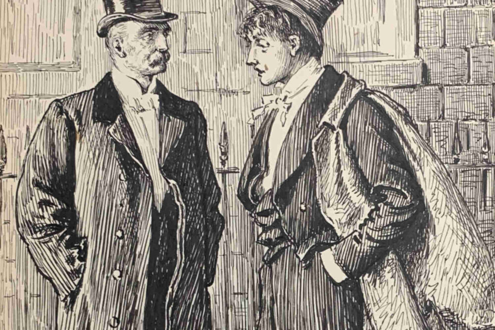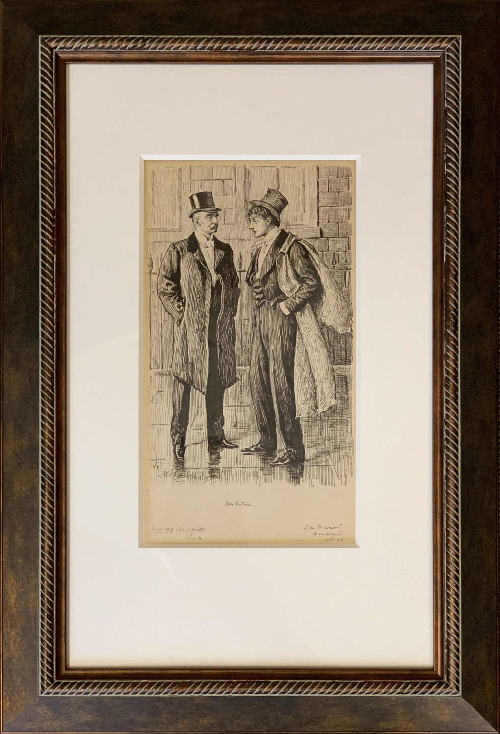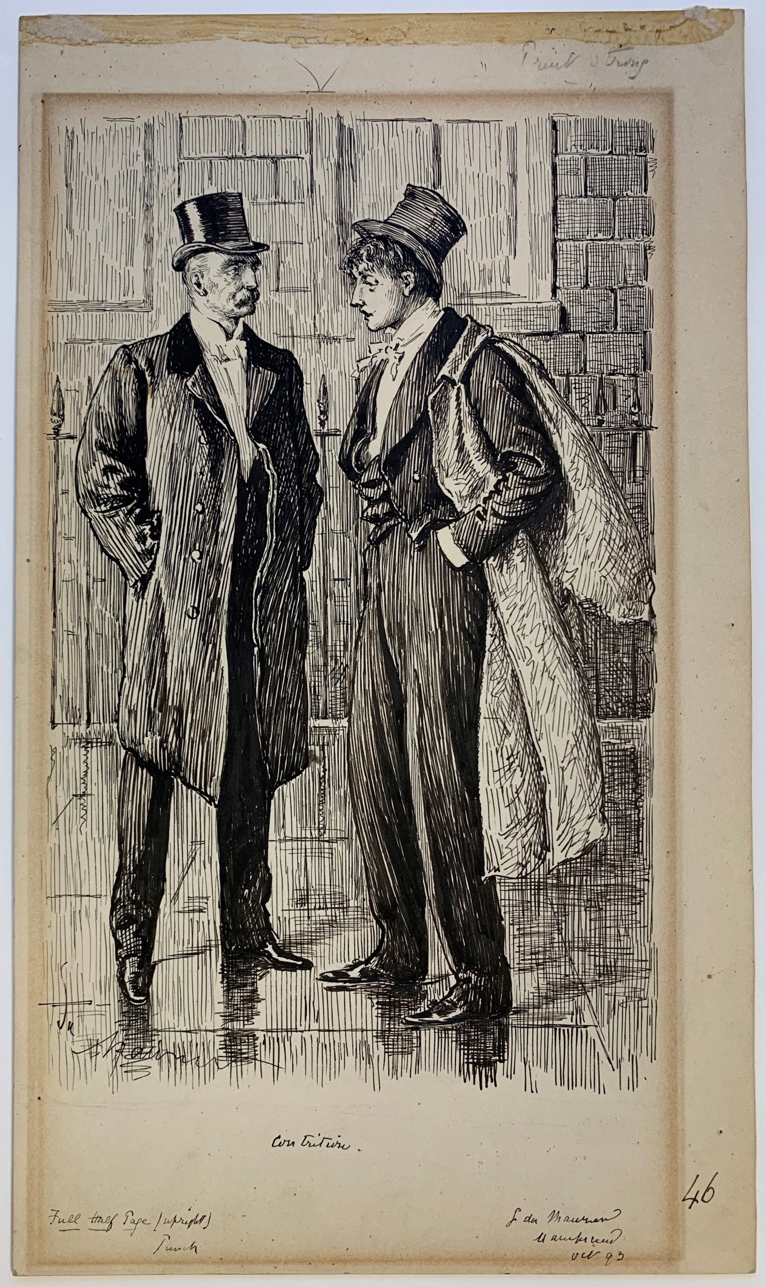 Du Maurier’s father wanted George to have a profession, but George failed his baccalaureate and wasted a year at University College London. Only after his father’s death did du Maurier return to Paris to study art. When he later moved to London, he became immersed in an enlightened social circle while beginning to contribute as an artist and writer for some leading periodicals, including the famous commentary magazine Punch, dissecting the pretensions and foibles of society. He developed a cartoon format for Punch that balanced text and image, both reporting on and satirizing the fashions and foibles of society. He developed a very literary type of cartoon, which married often-extensive texts to subtle drawing and displayed an understanding of wider cultural issues. His early years gave him both fuel and insight for his later social commentaries. His best work satirized the upper middle class attempting to follow the fashions of the Aesthetic Movement.