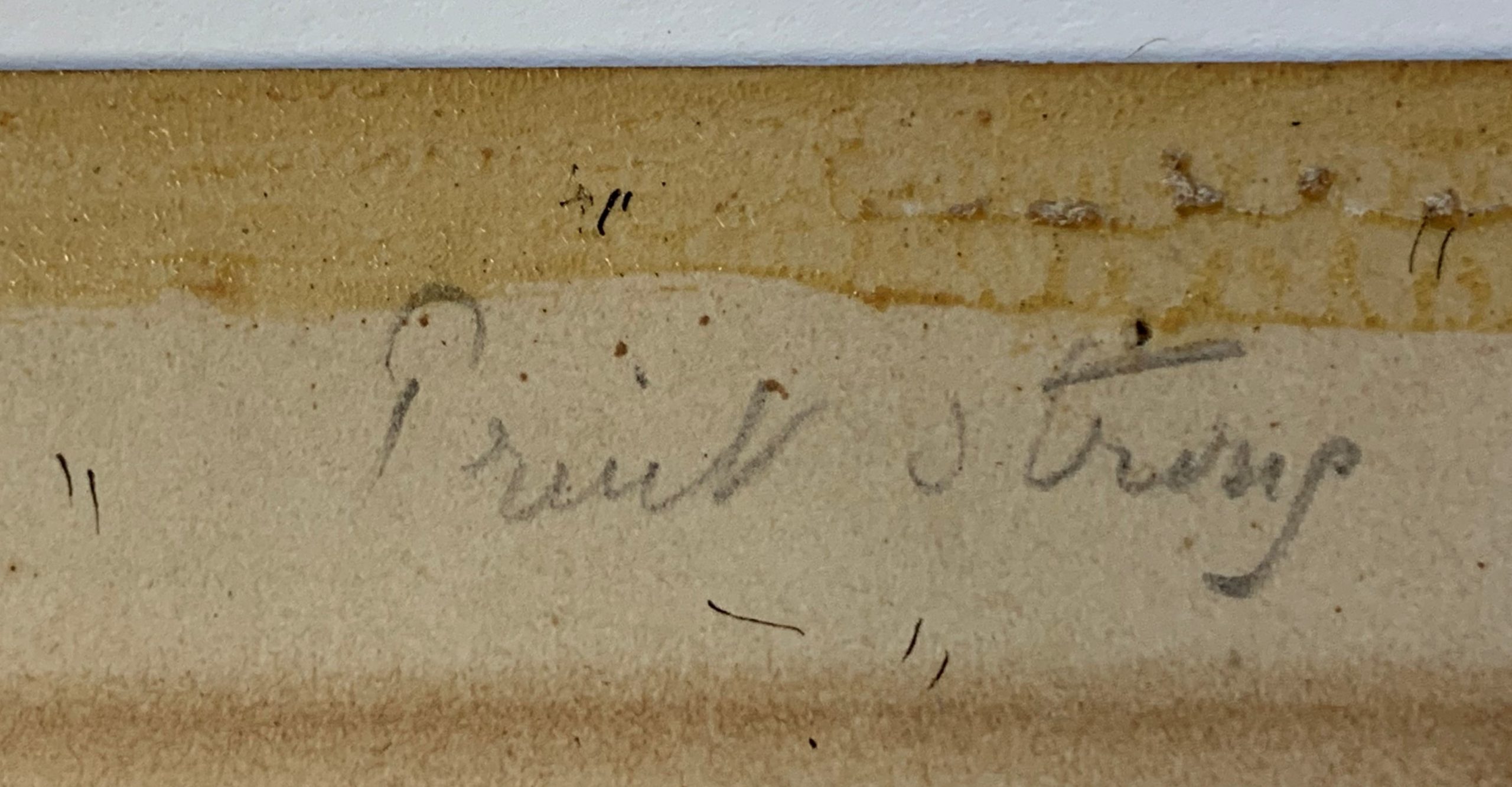 Framed in a brownish-copper traditional wood frame behind 99.9% UV-protective glass and conservation matting.