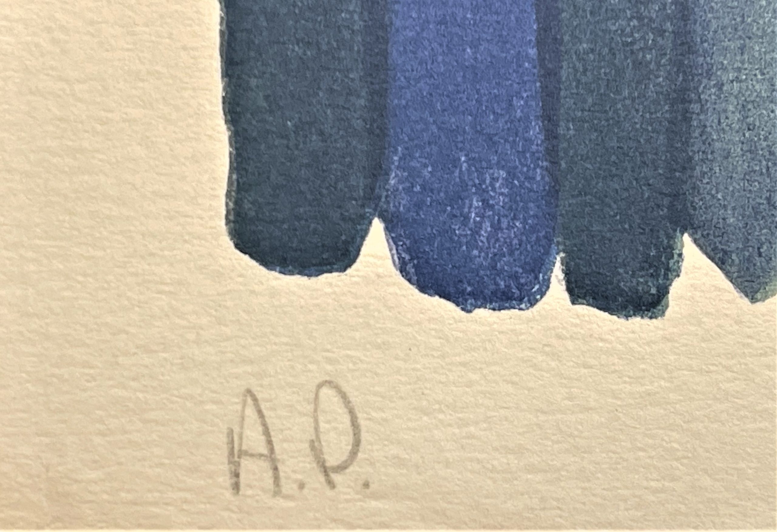 Hand-signed by artist, in pencil, en recto lower right. Marked “A.P.” (Artist’s Proof) en recto lower left.