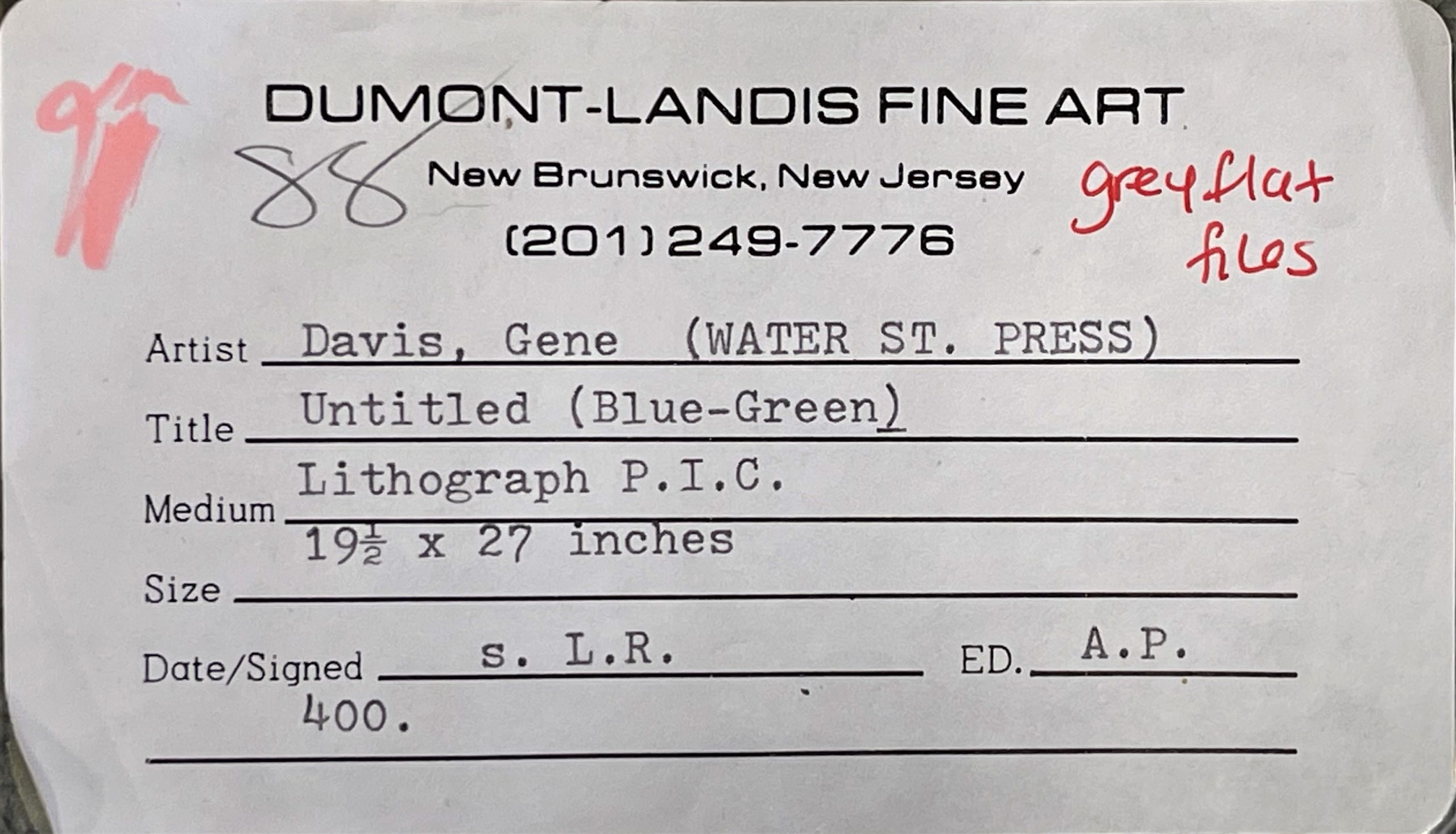 This work came from James O. Dumont and Raye Landis’ venerable gallery in New Brunswick, New Jersey. It is accompanied by the Dumont-Landis Fine Art gallery label.