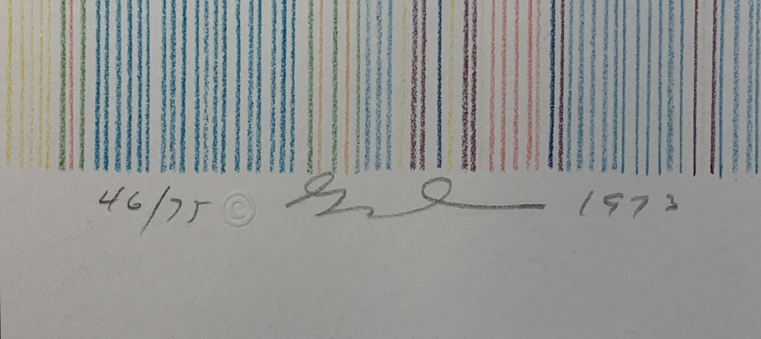 A masterfully-made lithograph with beautiful color and delicate lines, showing the lines which made Gene Davis famous.