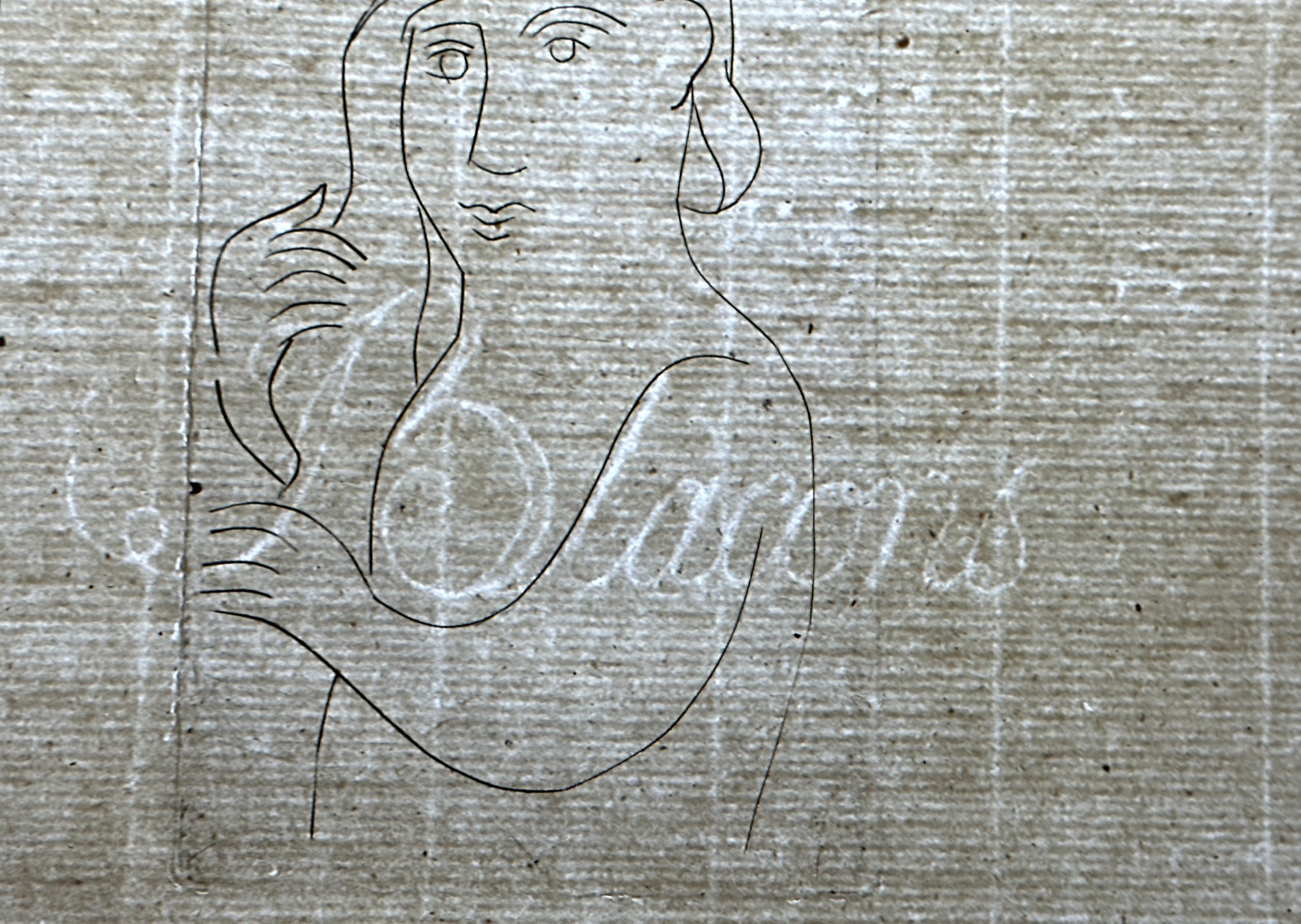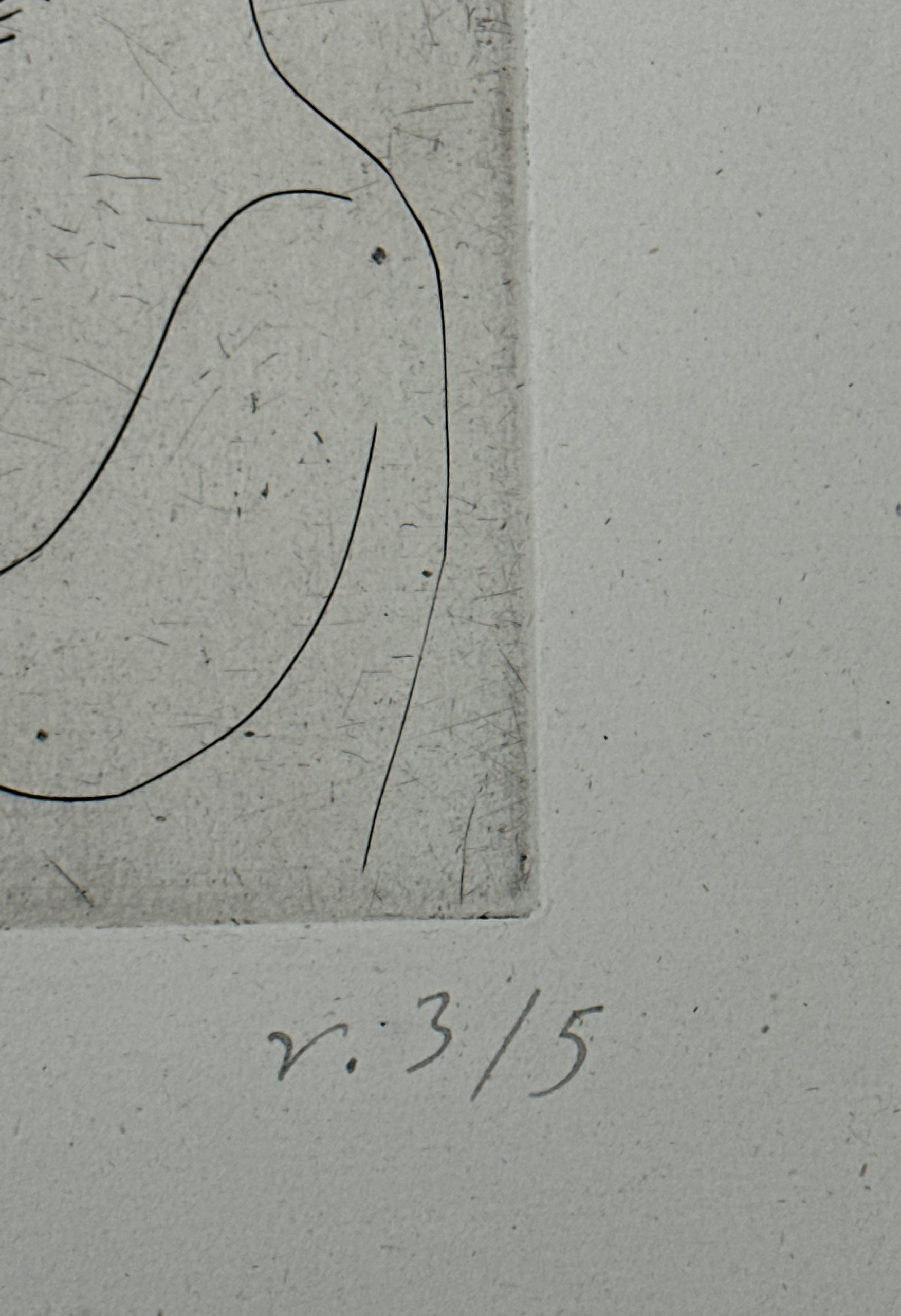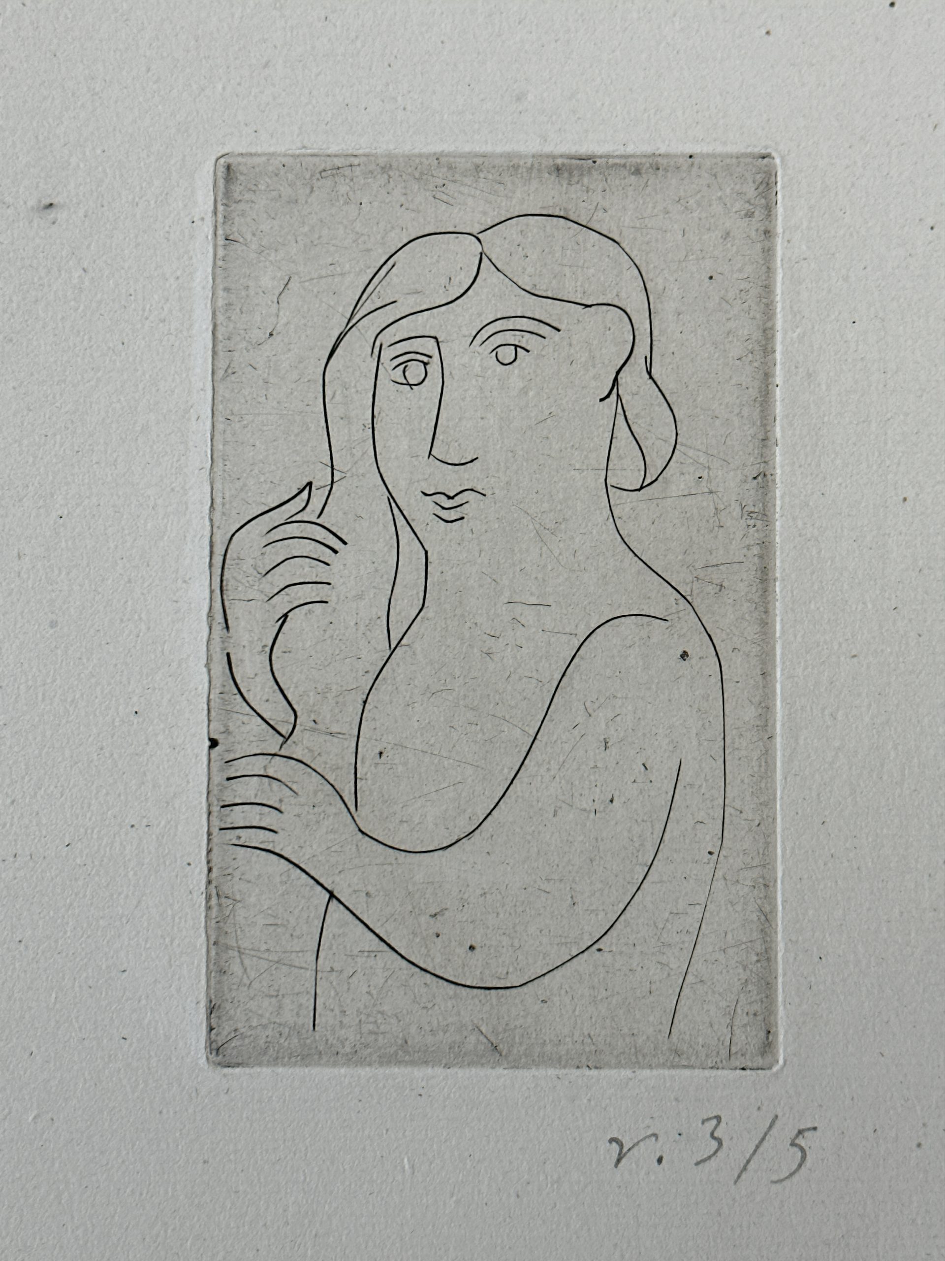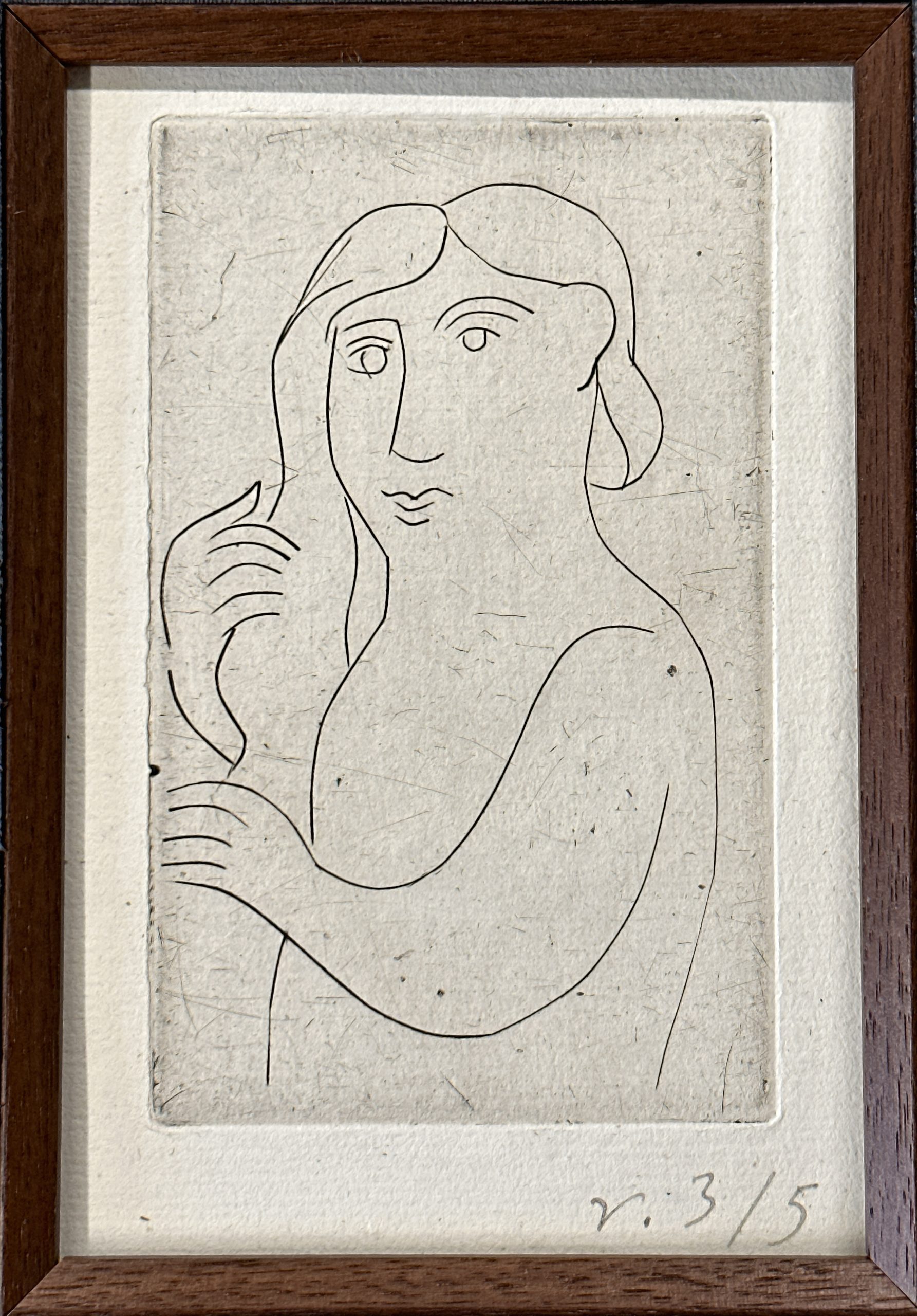 This gorgeous print by André Derain is one of only five printed on Old Vergé paper (aside from the main edition of 50 copies printed on velin d’Arches and copies on Japan). From a suite of seven engravings on copper plate “printed at the expense of an amateur”. When published in 1948, the suite on Arches was sold for Francs 250 and the suites on Japon were sold for Franc 375. Custom framed using strictly conservation grade materials behind 99% UV-blocking art glass. Accompanied by the publisher’s paper wrapper.
