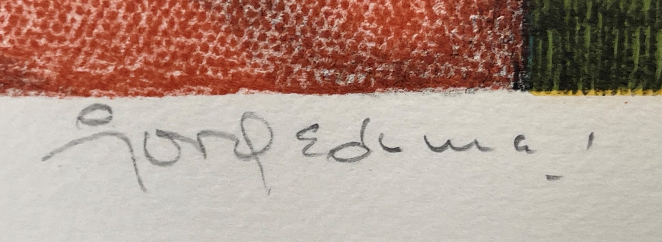Signed by the artist in pencil en recto lower right. Titled by the artist in pencil en recto lower center. Numbered by the artist in pencil en recto lower left. Bearing the blind emboss of Circle Gallery (and one other unknown emboss) en recto lower left in the margin.