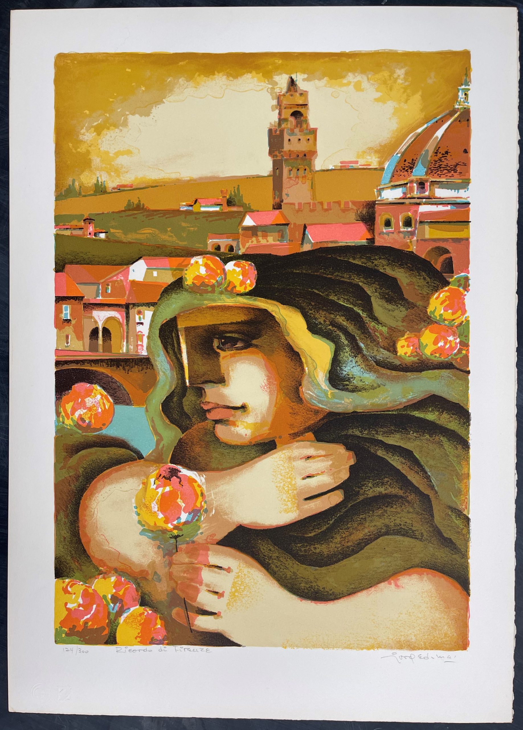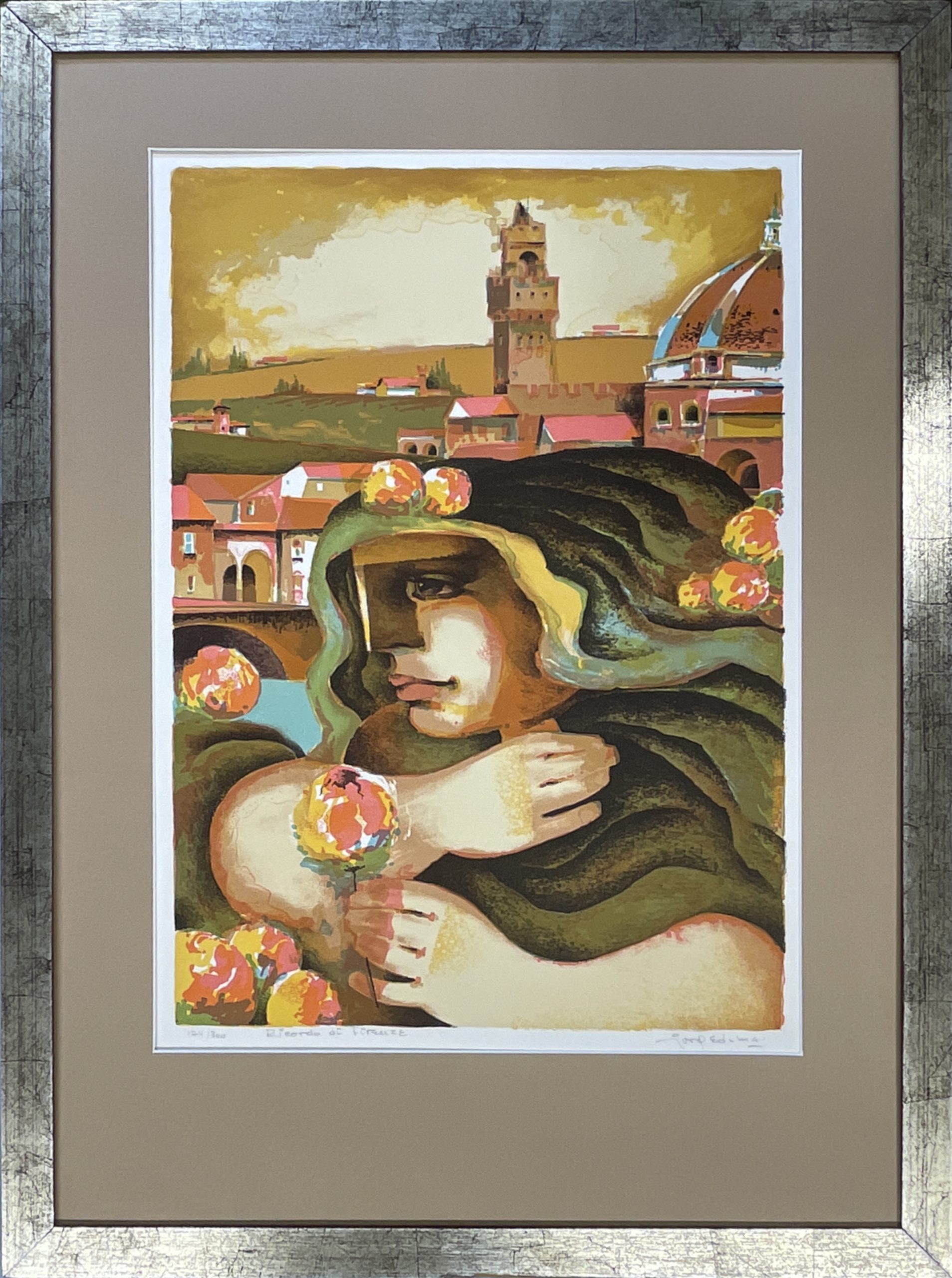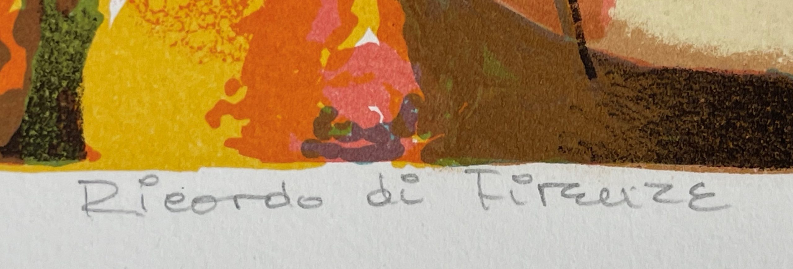 This cubist lithograph, Ricordo di Firenze (Memory of Florence), by the modernist Jorge E. Dumas, is remarkably expressive. The deep earthy colors and richly-inked picture give it great presence.