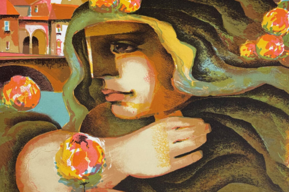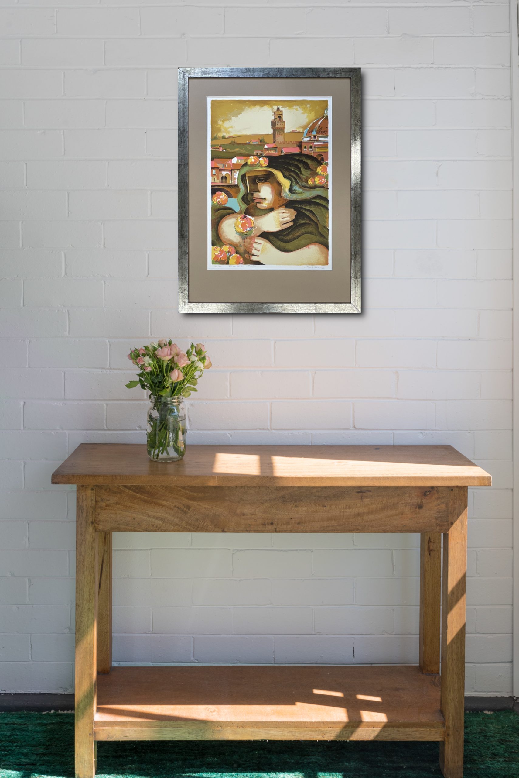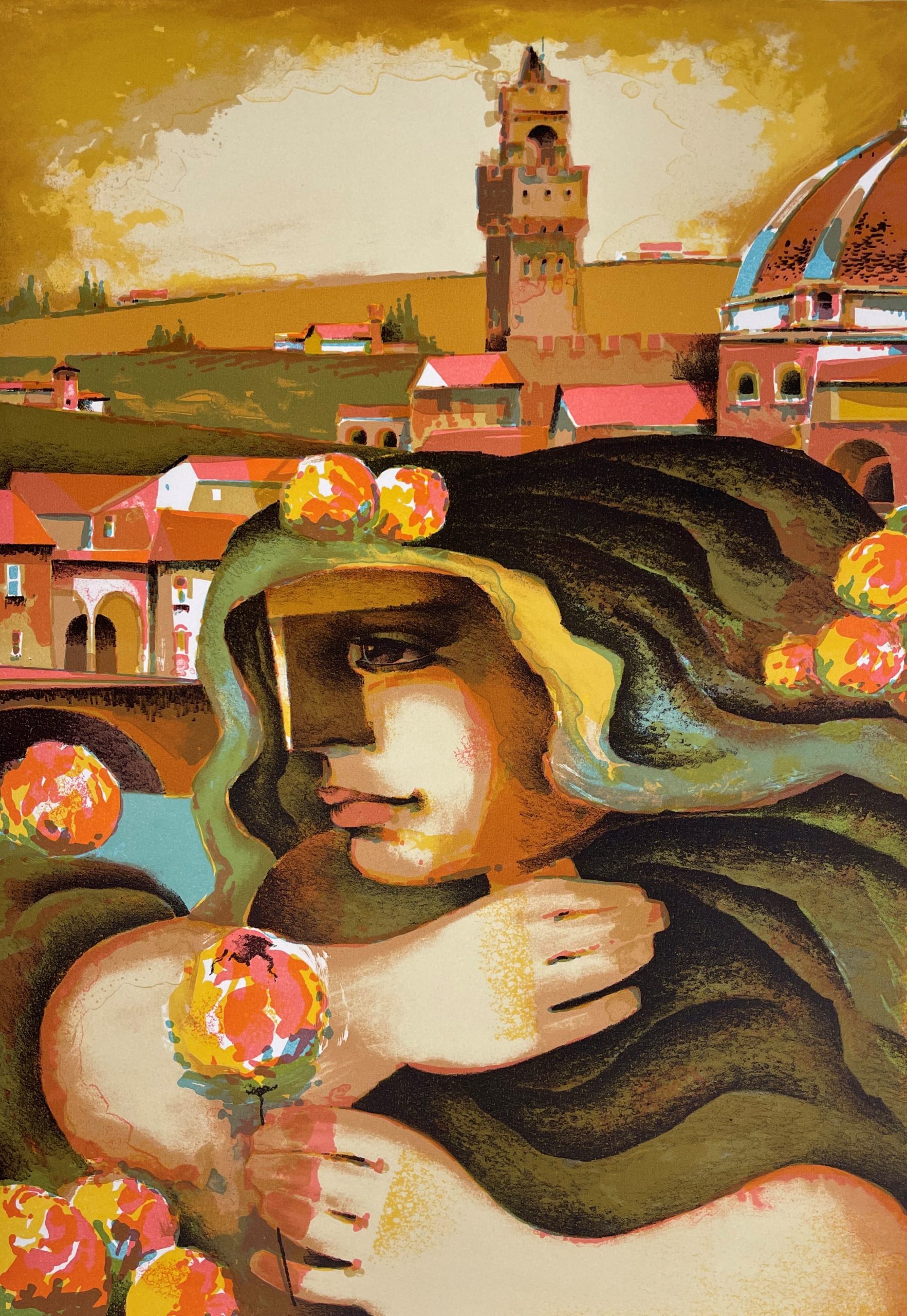 This cubist lithograph, Ricordo di Firenze (Memory of Florence), by the modernist Jorge E. Dumas, is remarkably expressive. The deep earthy colors and richly-inked picture give it great presence.