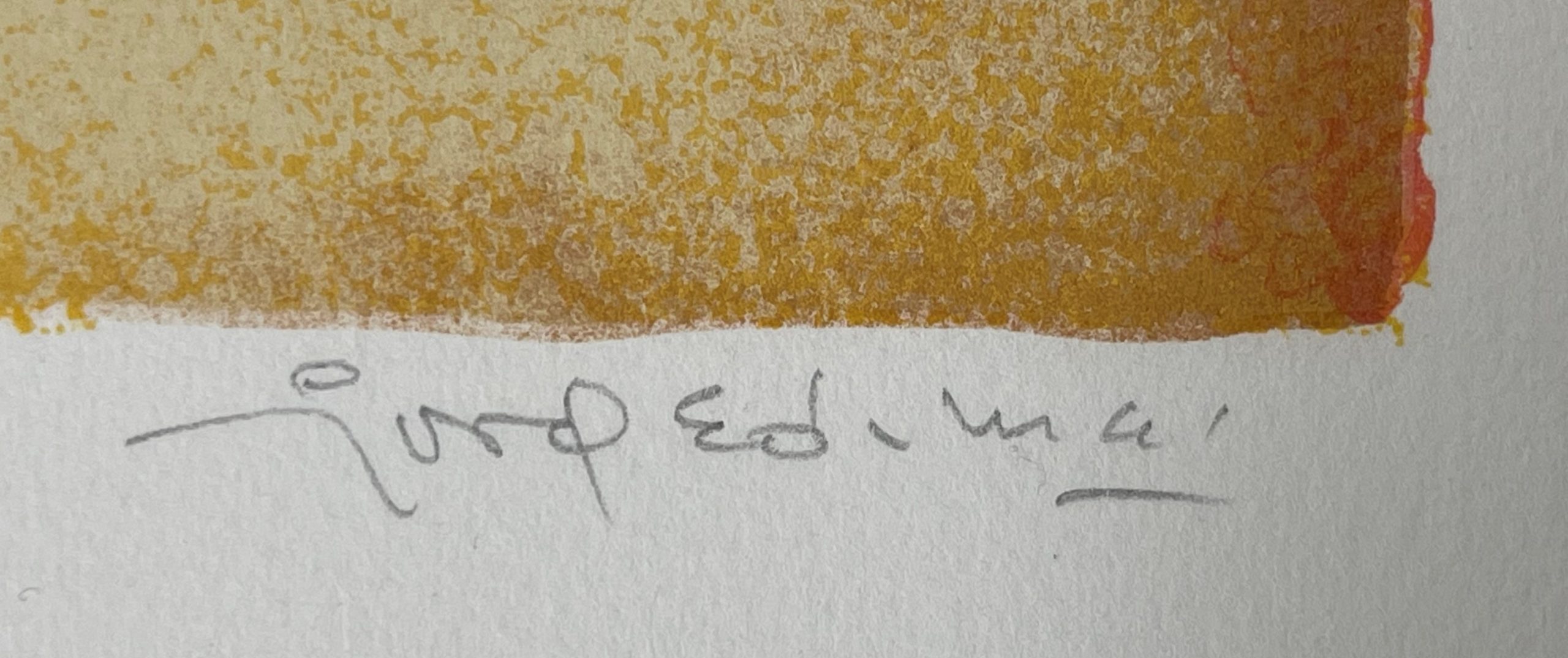 Signed by the artist in pencil en recto lower right. Titled by the artist in pencil en recto lower center. Numbered by the artist in pencil en recto lower left. Bearing the blind emboss of Circle Gallery (and one other unknown emboss) en recto lower left in the margin.