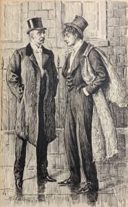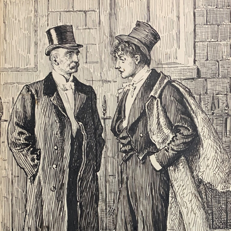Du Maurier’s father wanted George to have a profession, but George failed his baccalaureate and wasted a year at University College London. Only after his father’s death did du Maurier return to Paris to study art. When he later moved to London, he became immersed in an enlightened social circle while beginning to contribute as an artist and writer for some leading periodicals, including the famous commentary magazine Punch, dissecting the pretensions and foibles of society. He developed a cartoon format for Punch that balanced text and image, both reporting on and satirizing the fashions and foibles of society. He developed a very literary type of cartoon, which married often-extensive texts to subtle drawing and displayed an understanding of wider cultural issues. His early years gave him both fuel and insight for his later social commentaries. His best work satirized the upper middle class attempting to follow the fashions of the Aesthetic Movement.