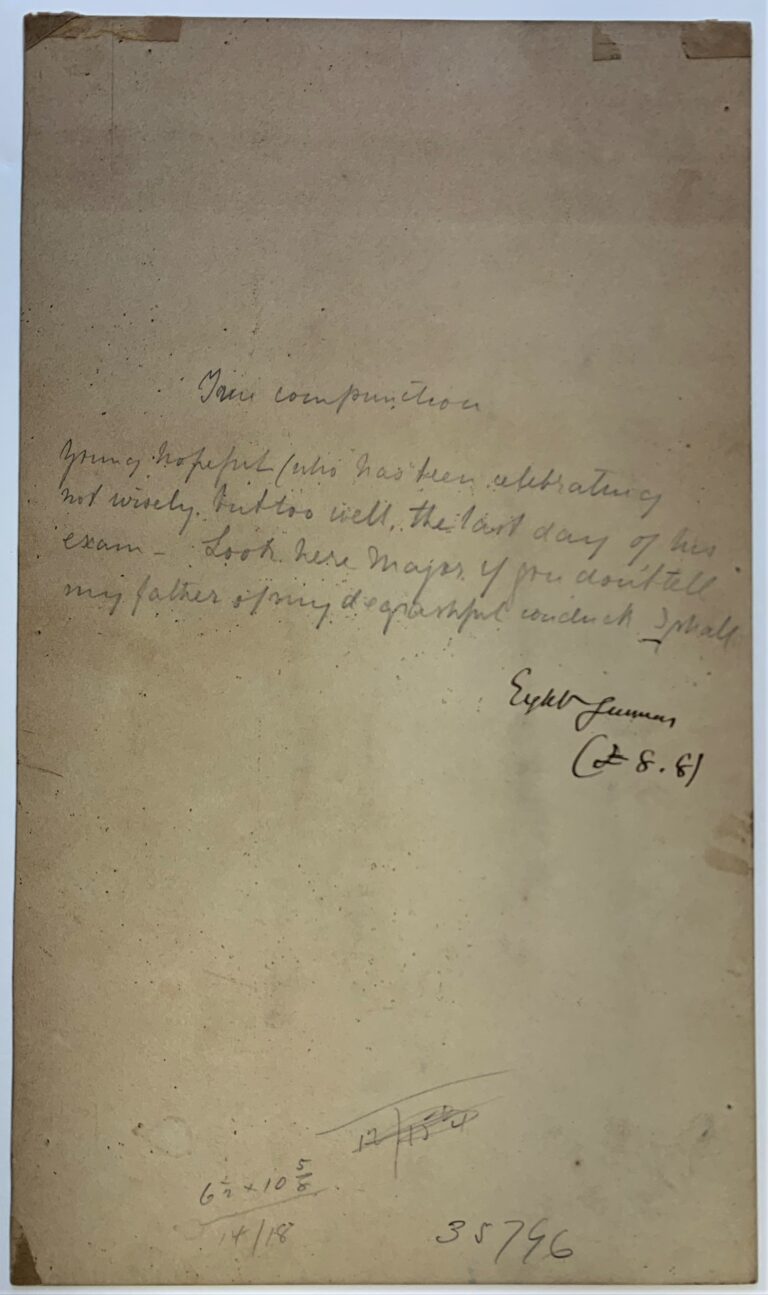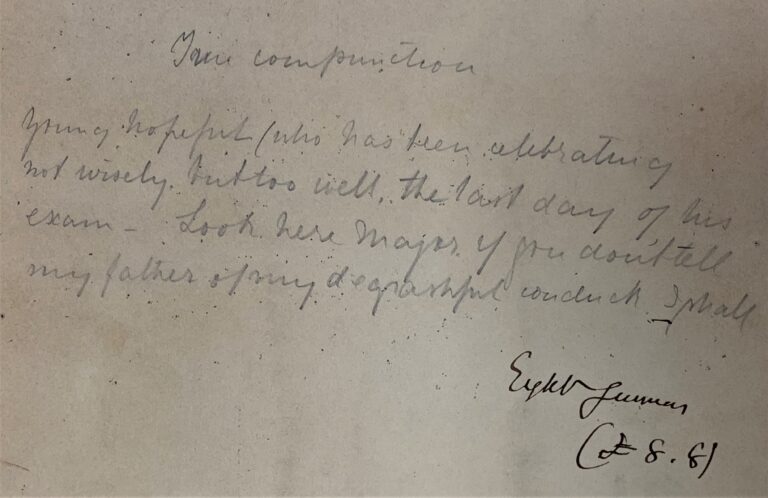 Your compunction. Young hopeful who has been celebrating not wisely but too well, the last day of his exam. Look here Major if you don’t tell my father of my disgraceful conduct I shall.